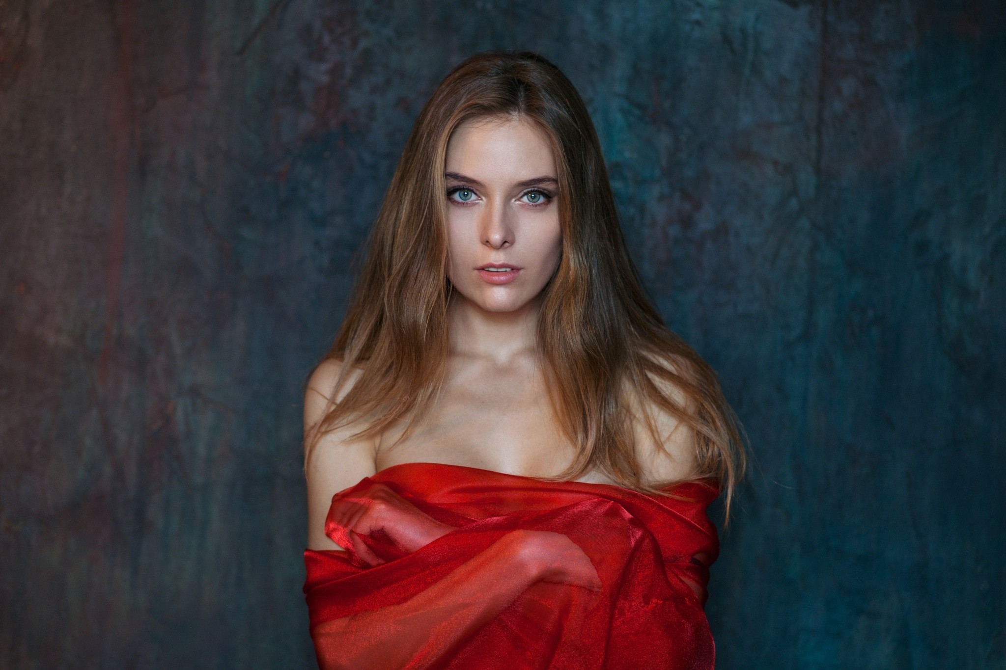 Красивая девушка брюнетка в красном платье - 2048x1365