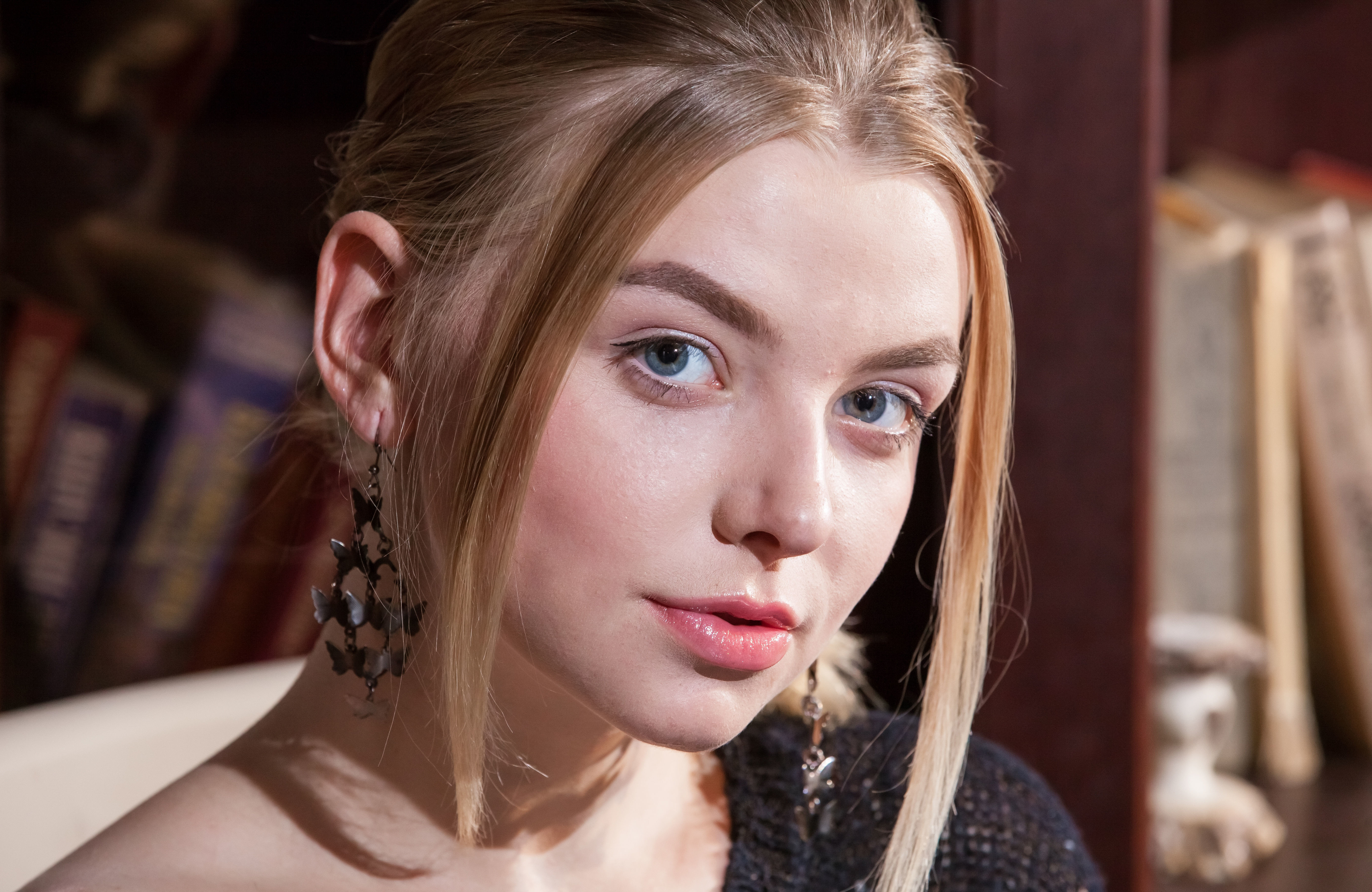 Молодая девушка блондинка с голубыми глазами - 5578x3626