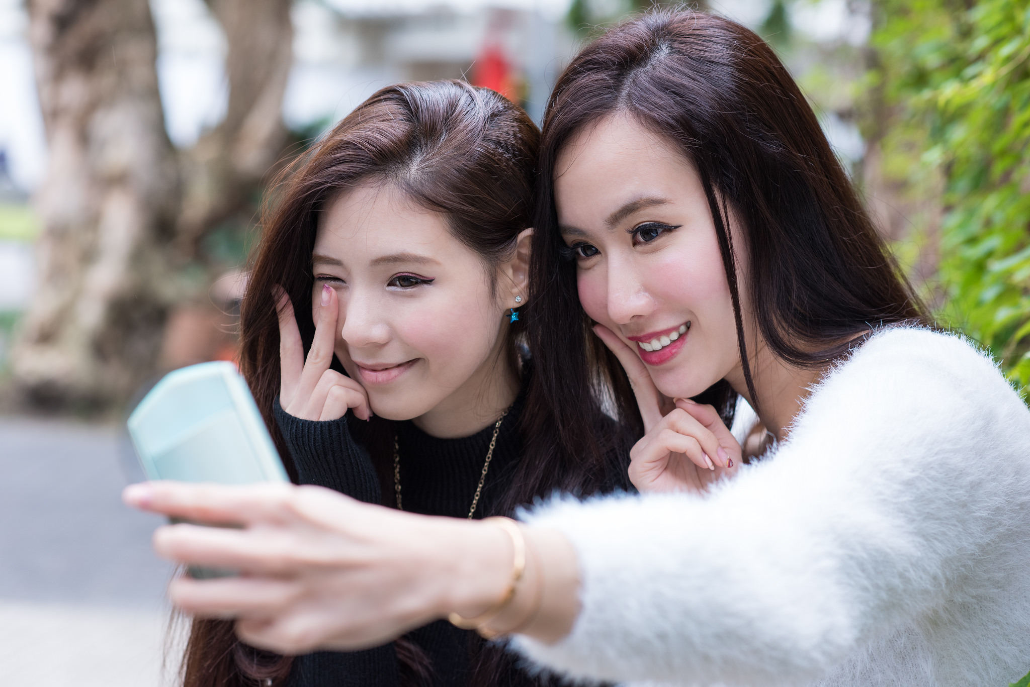 Обои: Две девушки азиатки делают селфи