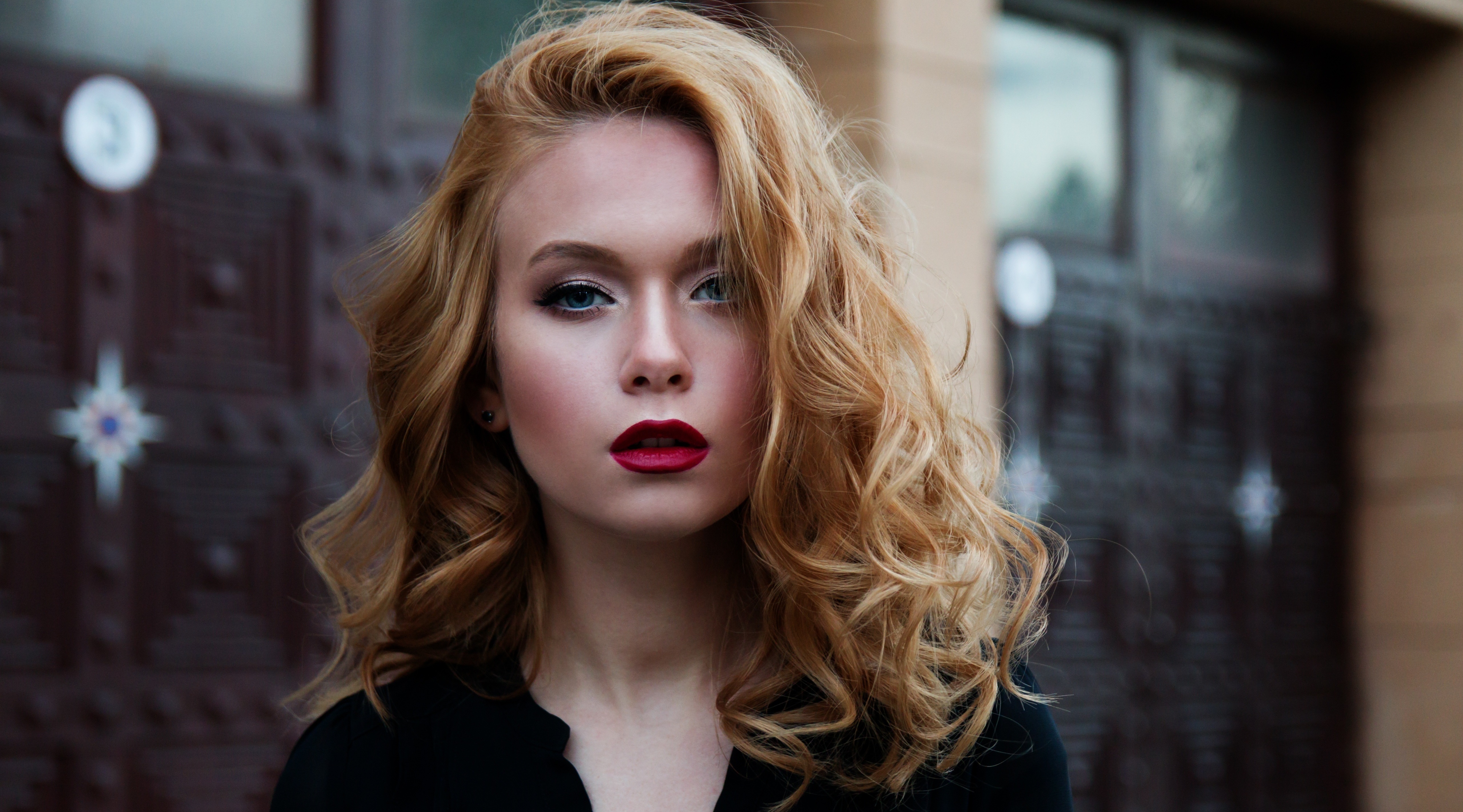 Красивая блондинка модель с голубыми глазами - 5120x2844