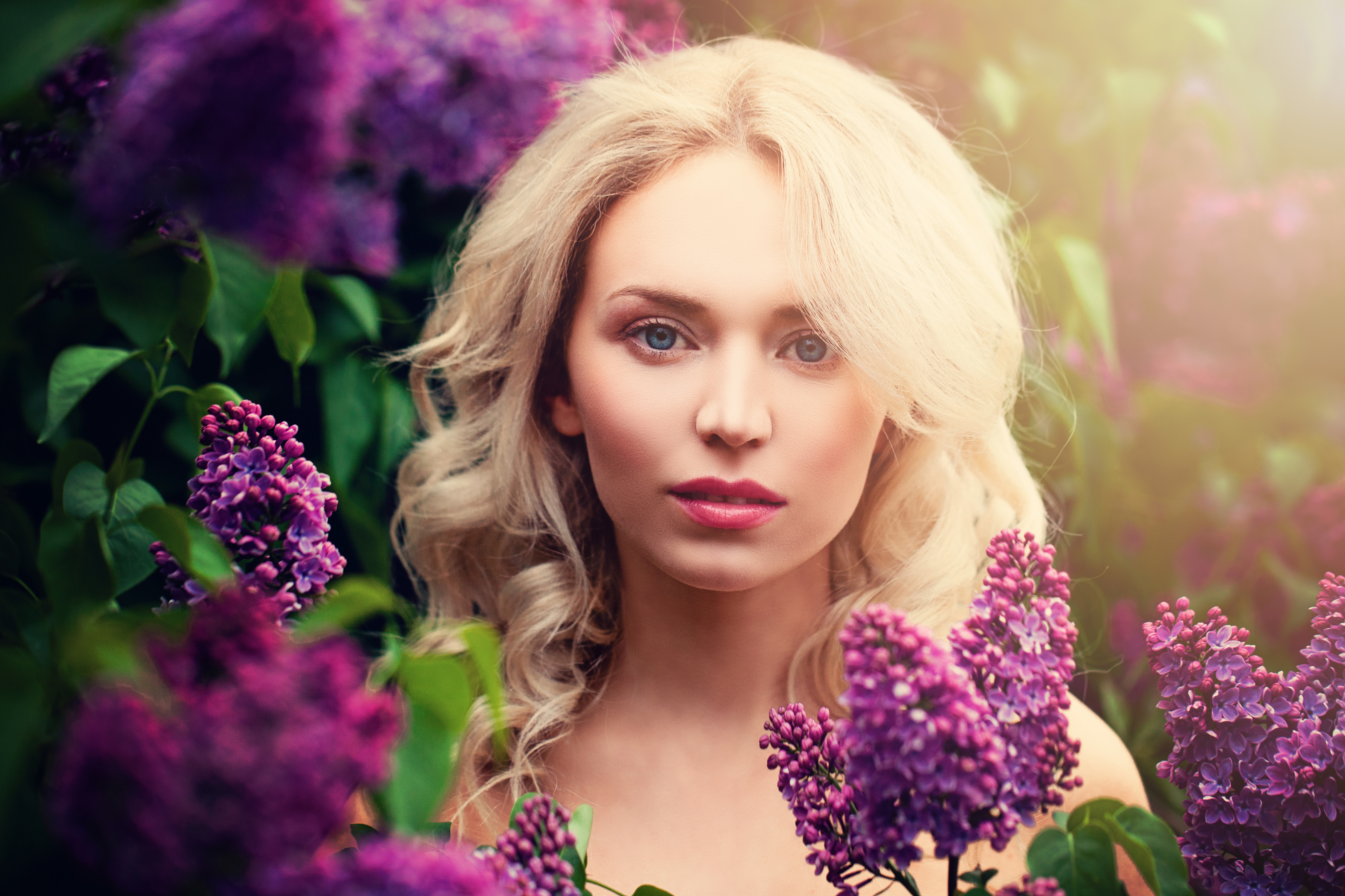 Голубоглазая блондинка в ветках сирени - 4200x2800