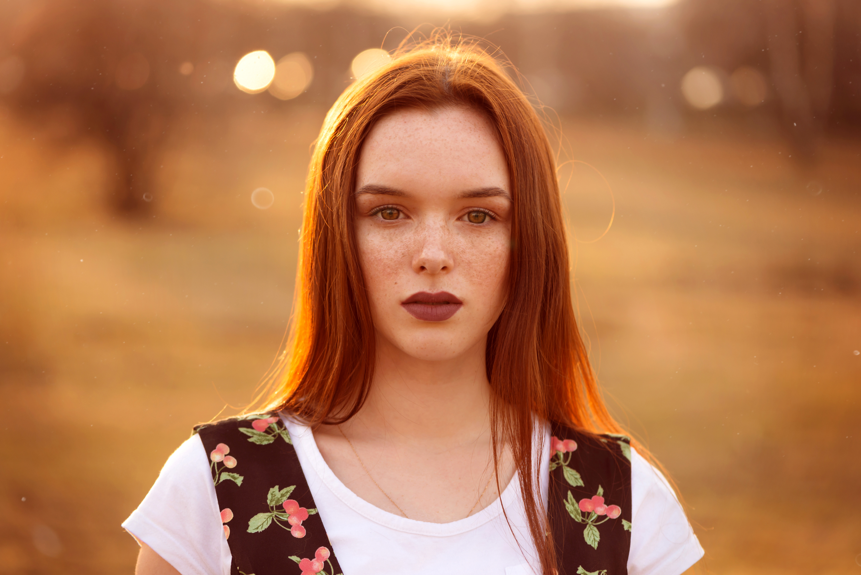 Красивая рыжеволосая яркая девушка с веснушками - 3008x2008