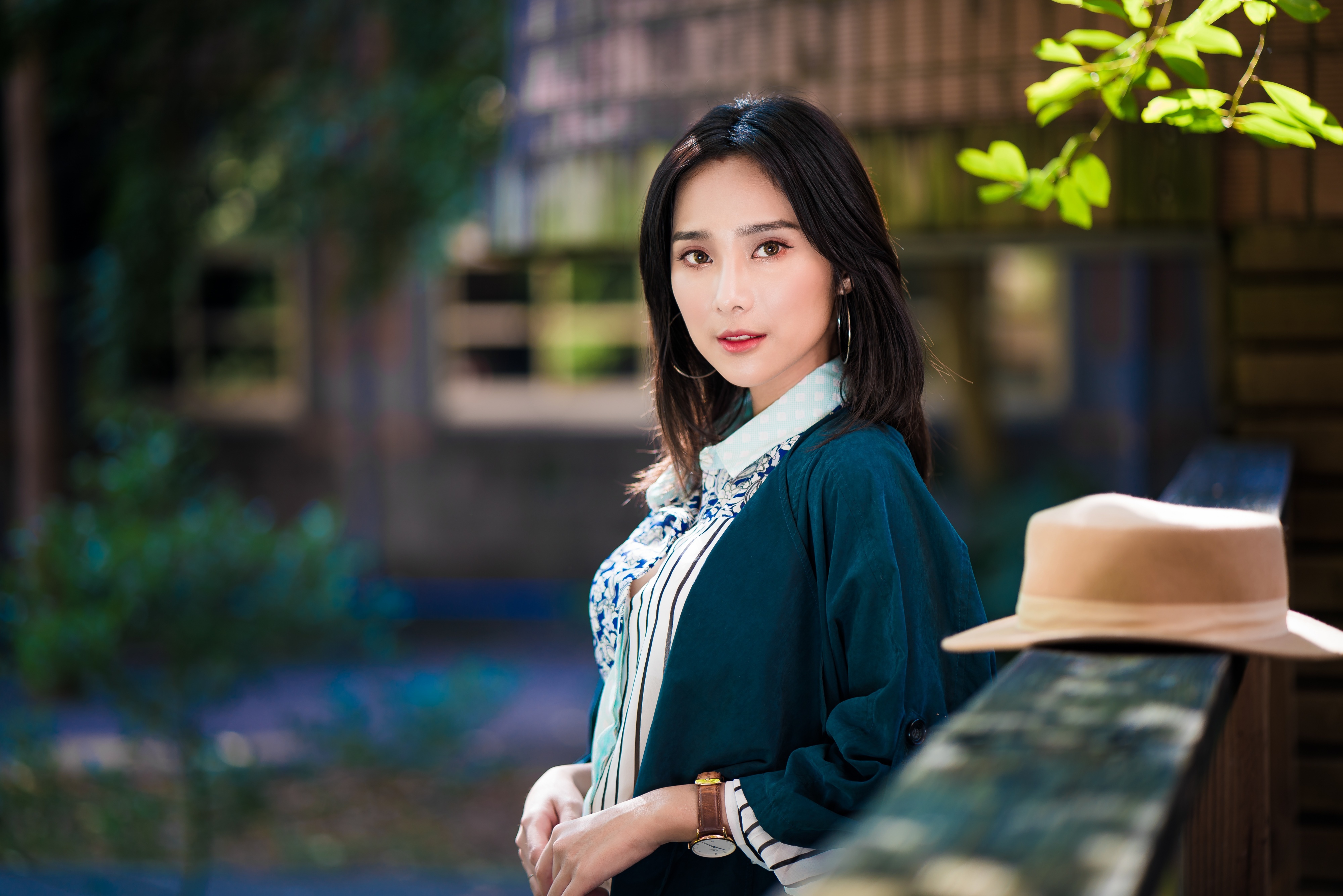 Красивая девушка азиатка в красном кимоно с палочкой в руке