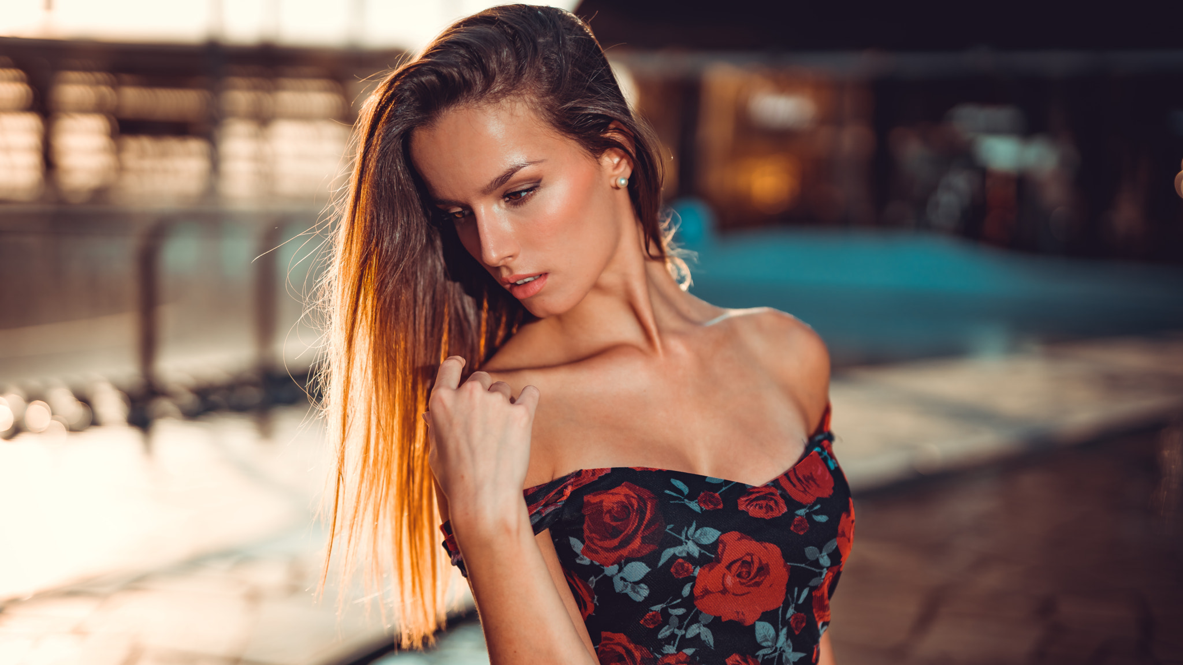 Красивая длинноволосая брюнетка в платье - 3840x2160