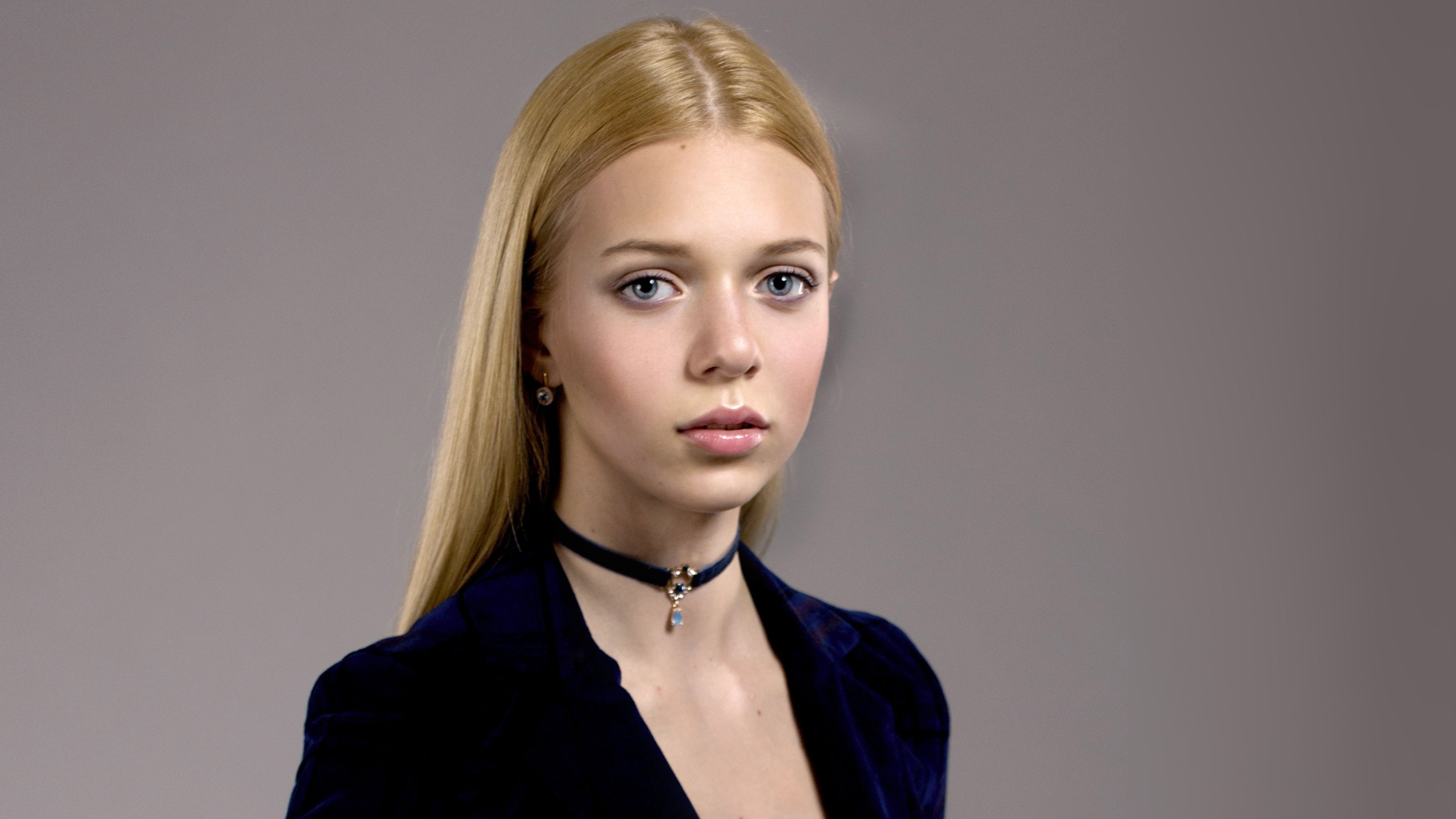 Нежная голубоглазая девушка с украшением на шее - 3693x2077