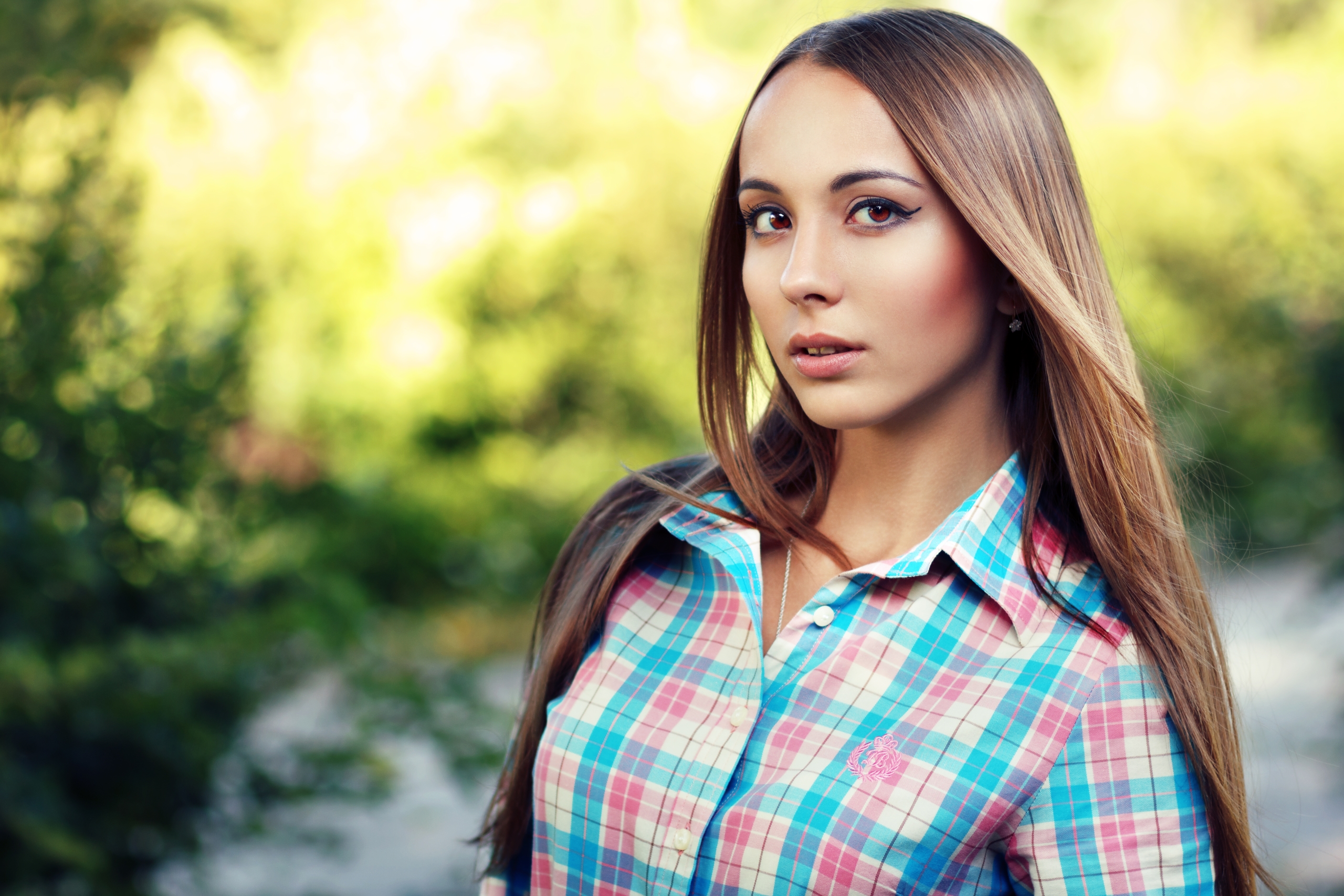 Молодая длинноволосая девушка в рубашке - 2560x1707