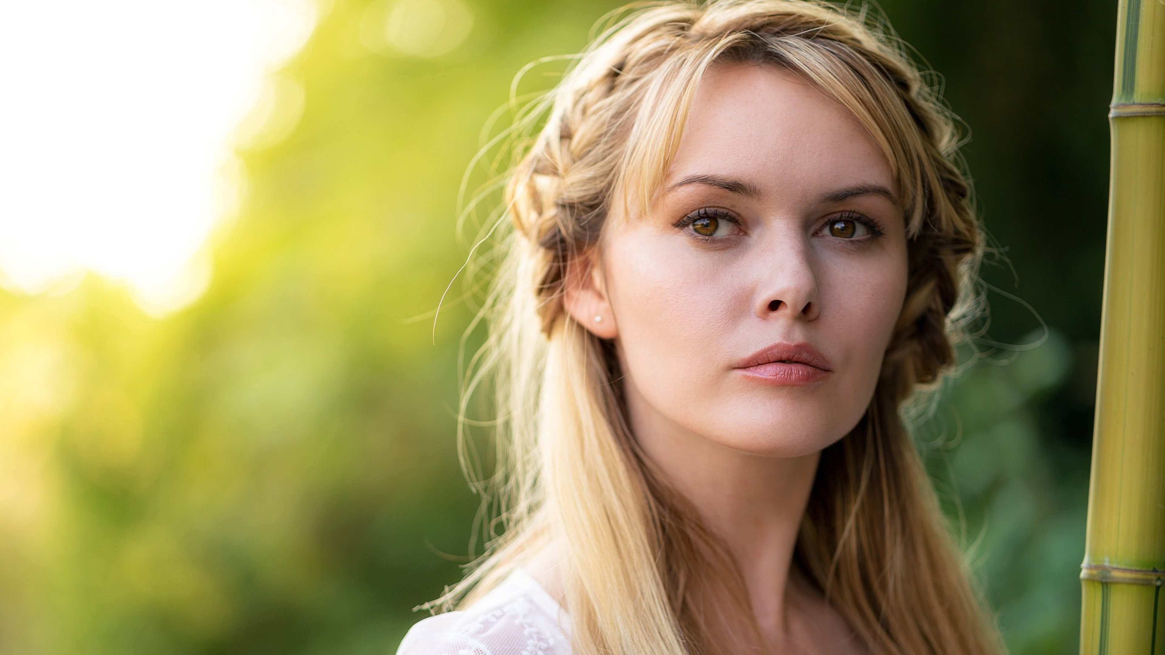 Задуманная кареглазая блондинка лицо крупным планом - 3840x2160