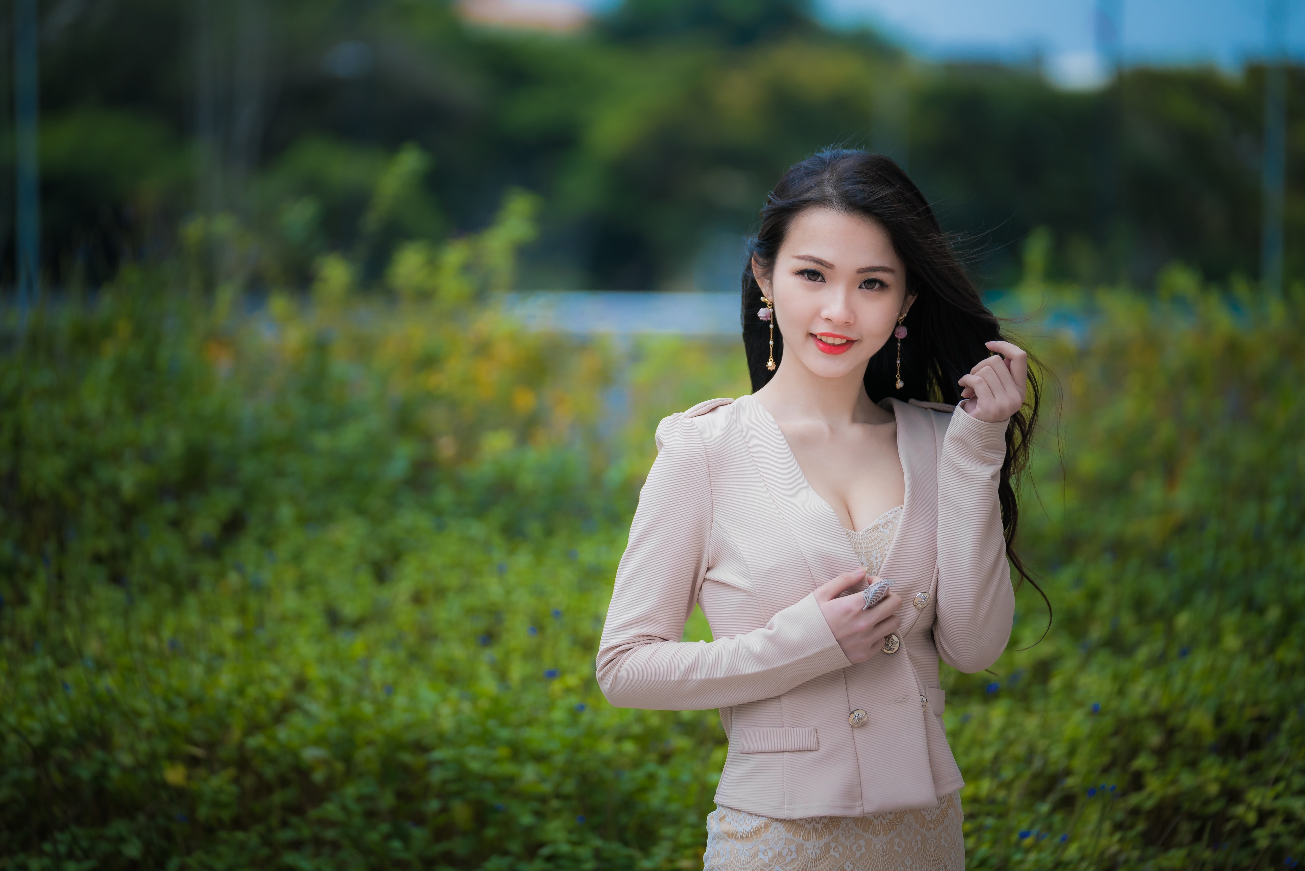 Обои: Улыбающаяся девушка азиатка в костюме