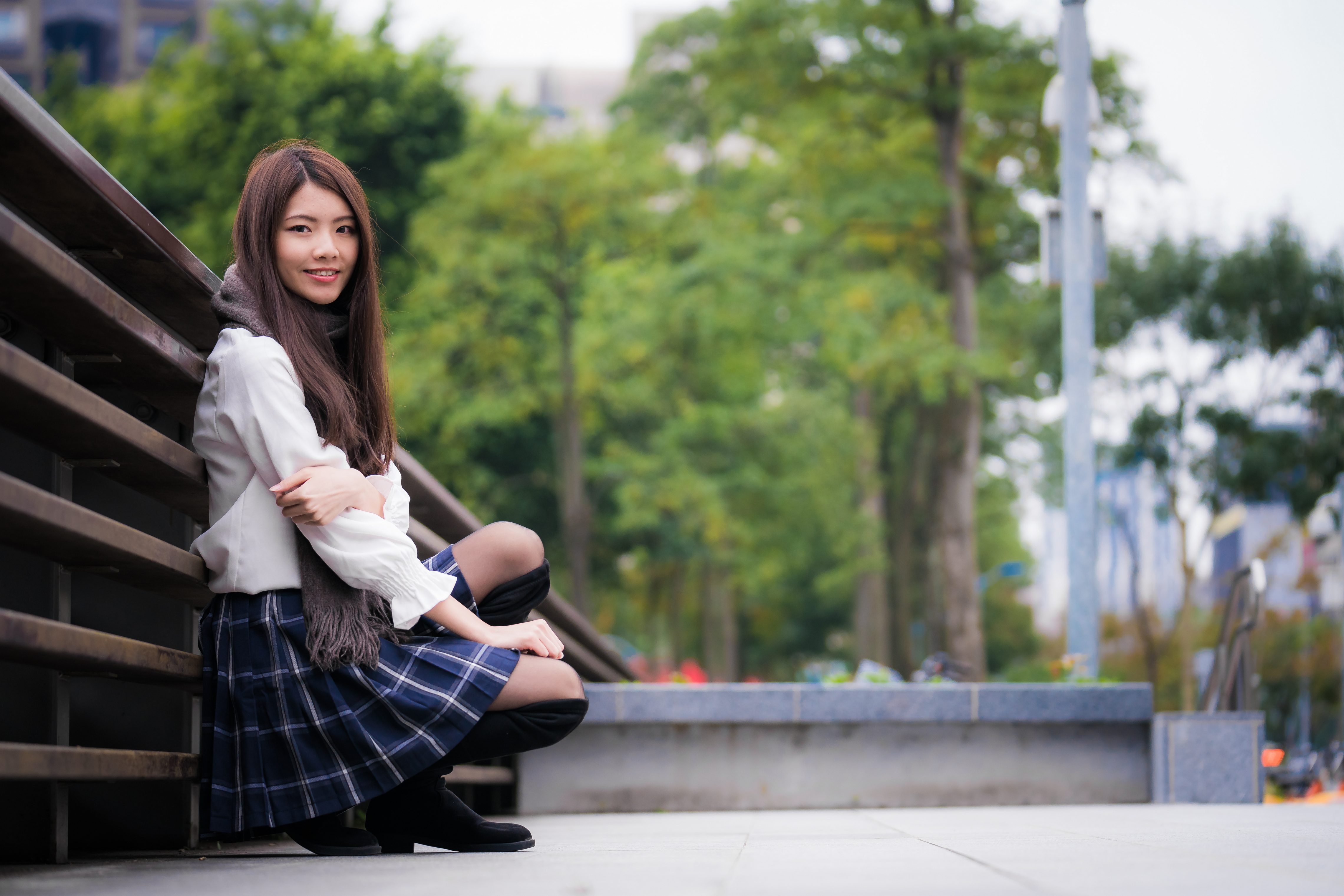 Молодая девушка азиатка в черных сапогах - 4562x3043