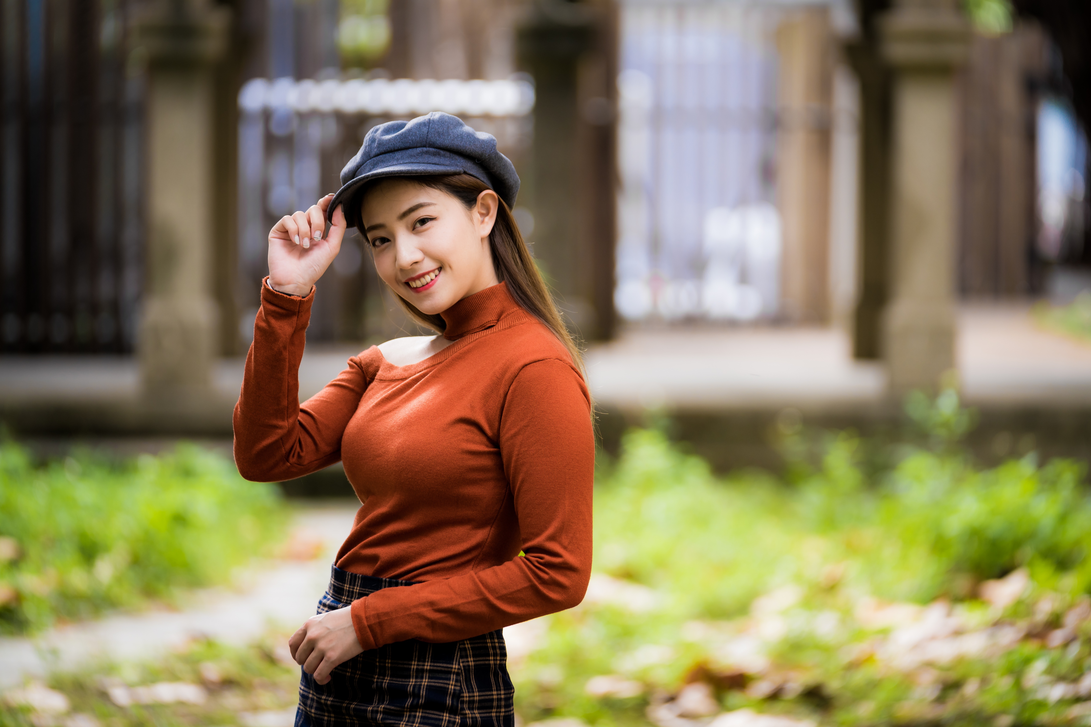 Улыбающаяся девушка азиатка в кепке - 4562x3041