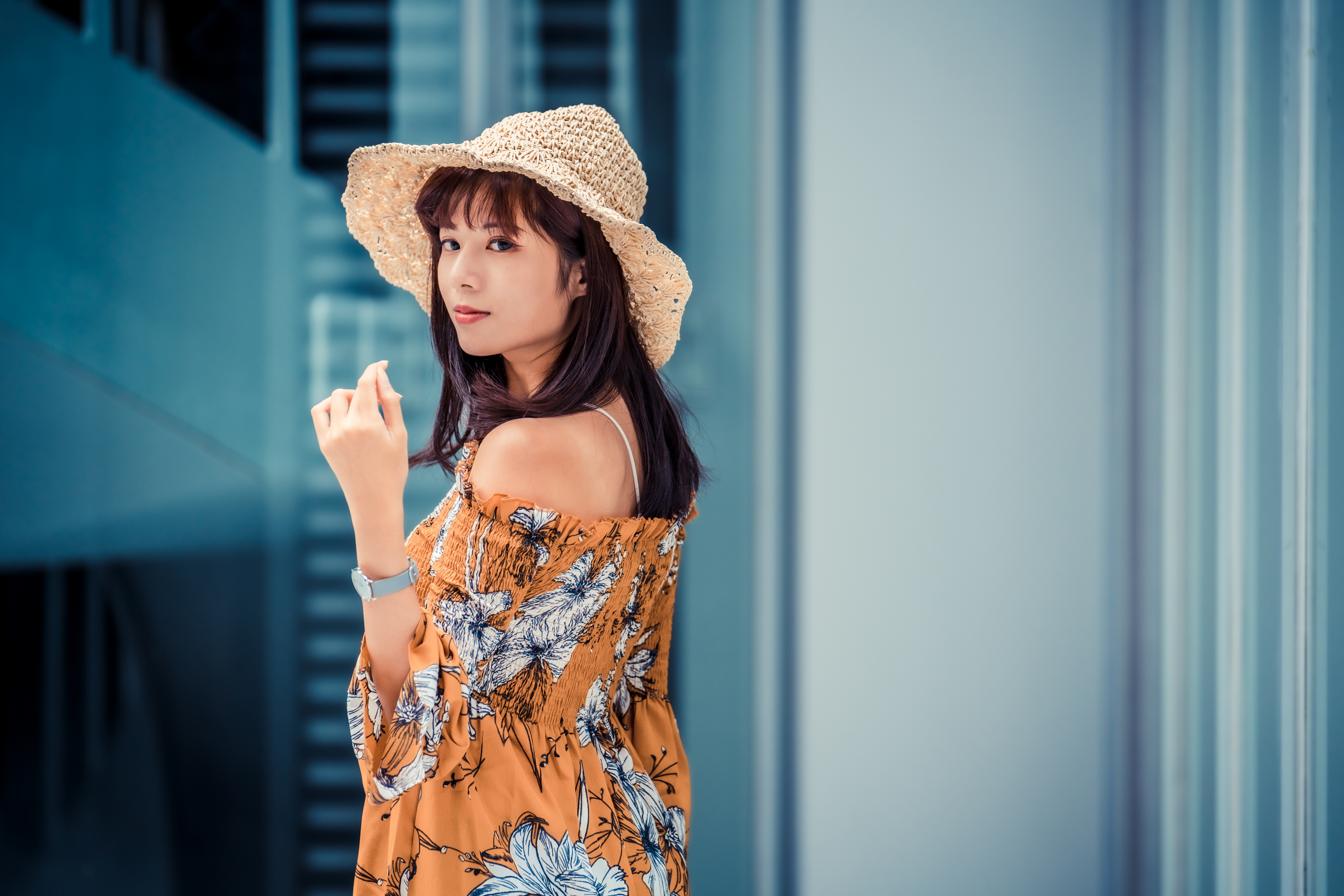 Девушка азиатка в шляпе летом - 4562x3043