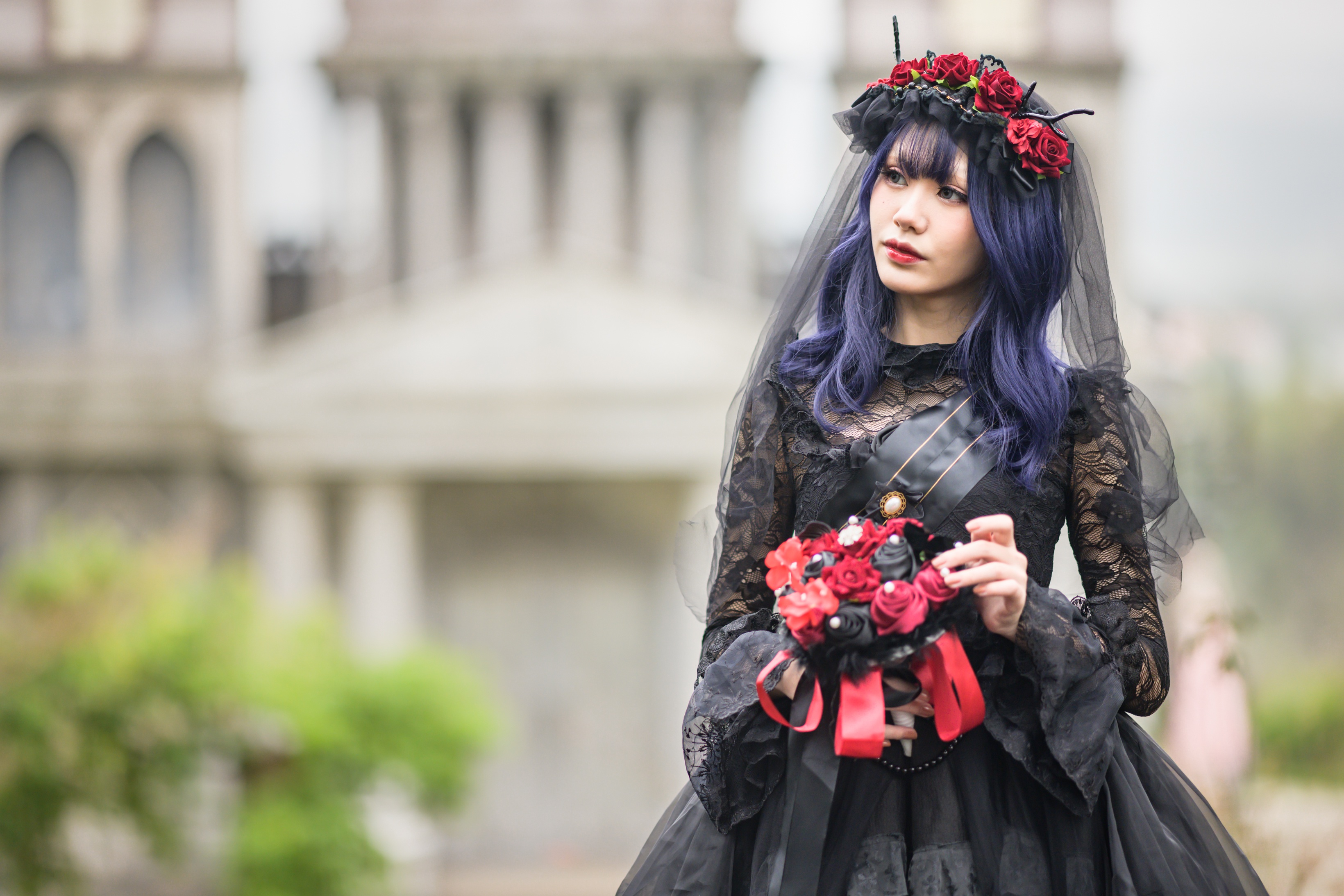 Девушка в черном платье на праздник Хэллоуин - 3280x2187