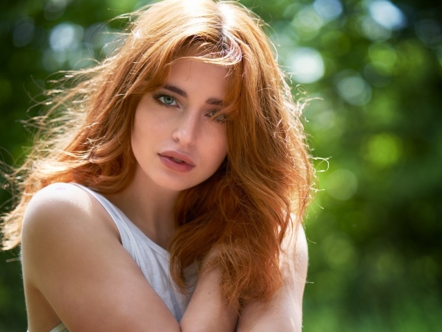 Обои: Нежная зеленоглазая девушка с рыжими волосами
