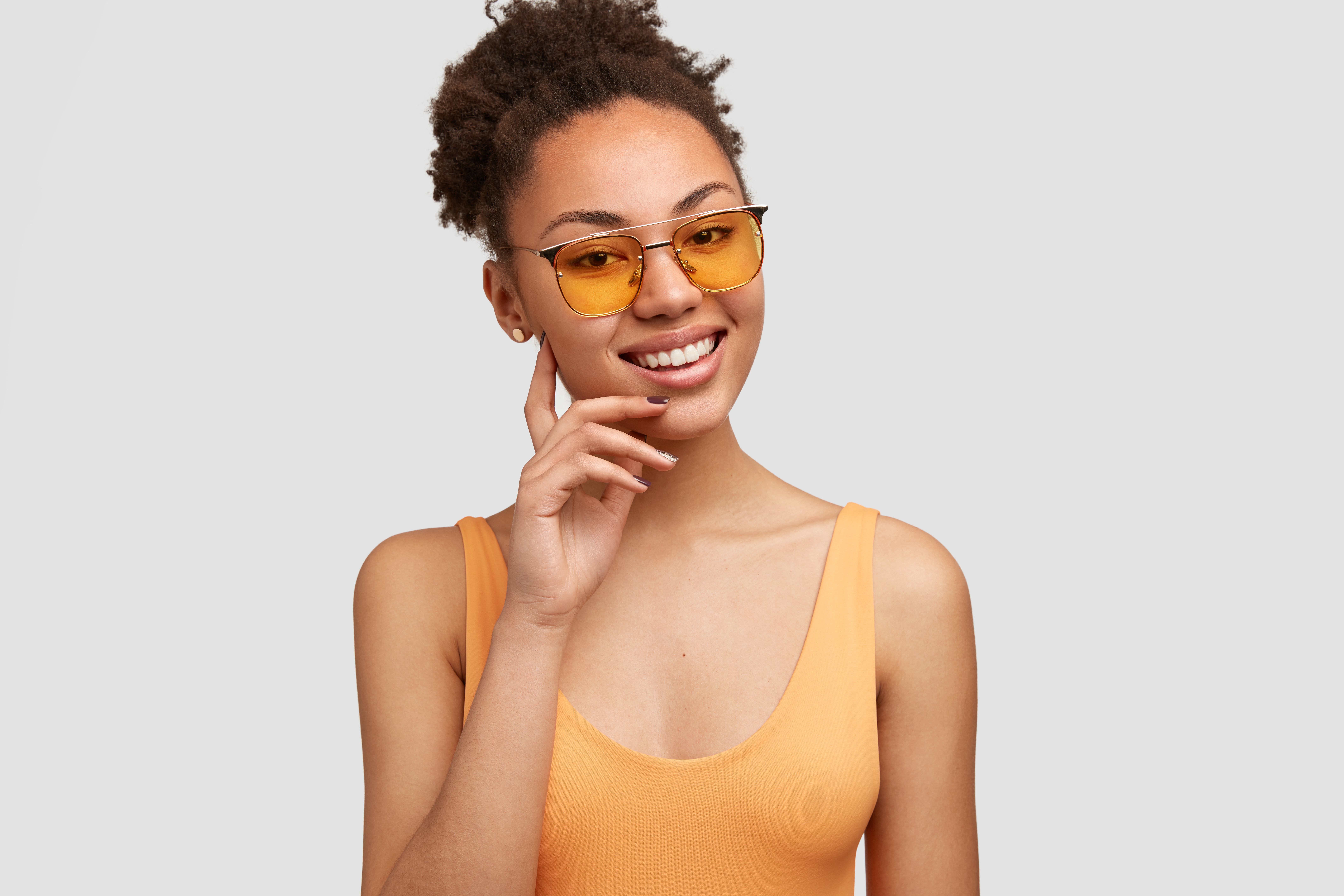 Красивая улыбающаяся темнокожая девушка в солнечных очках - 8495x5663
