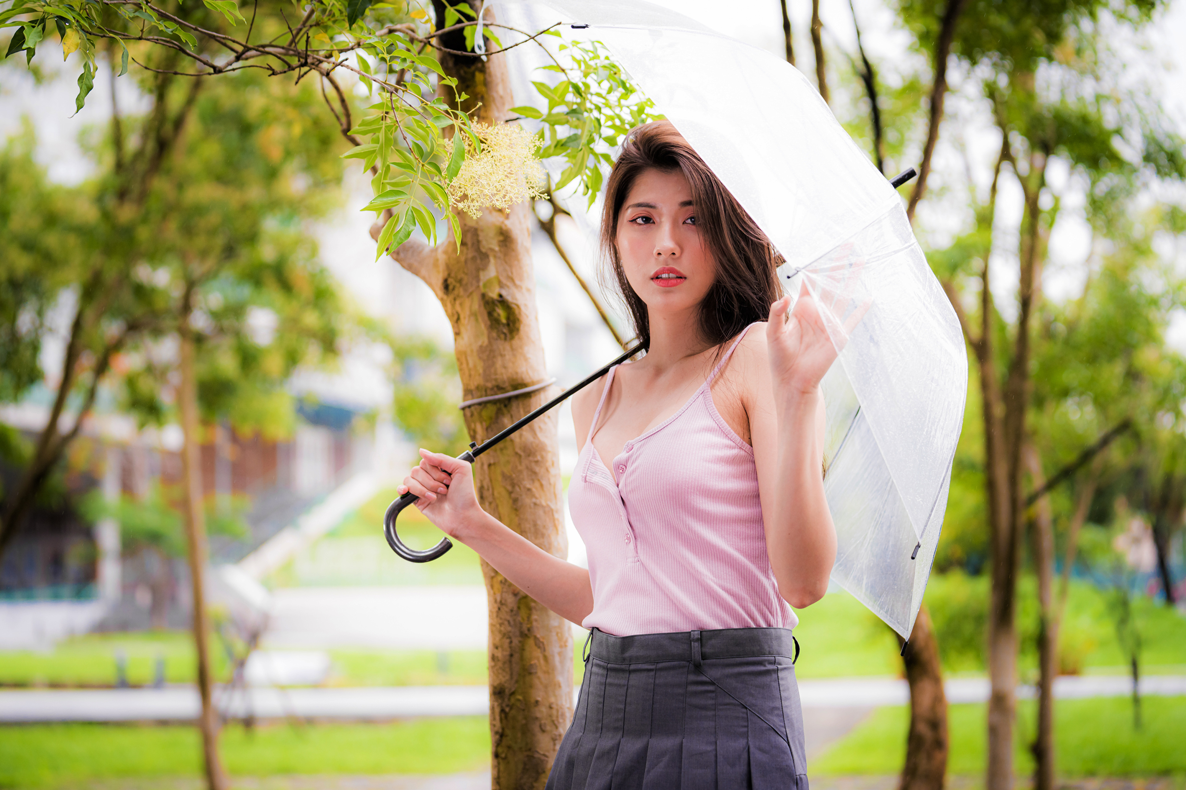 Девушка азиатка с зонтом руке - 3840x2559