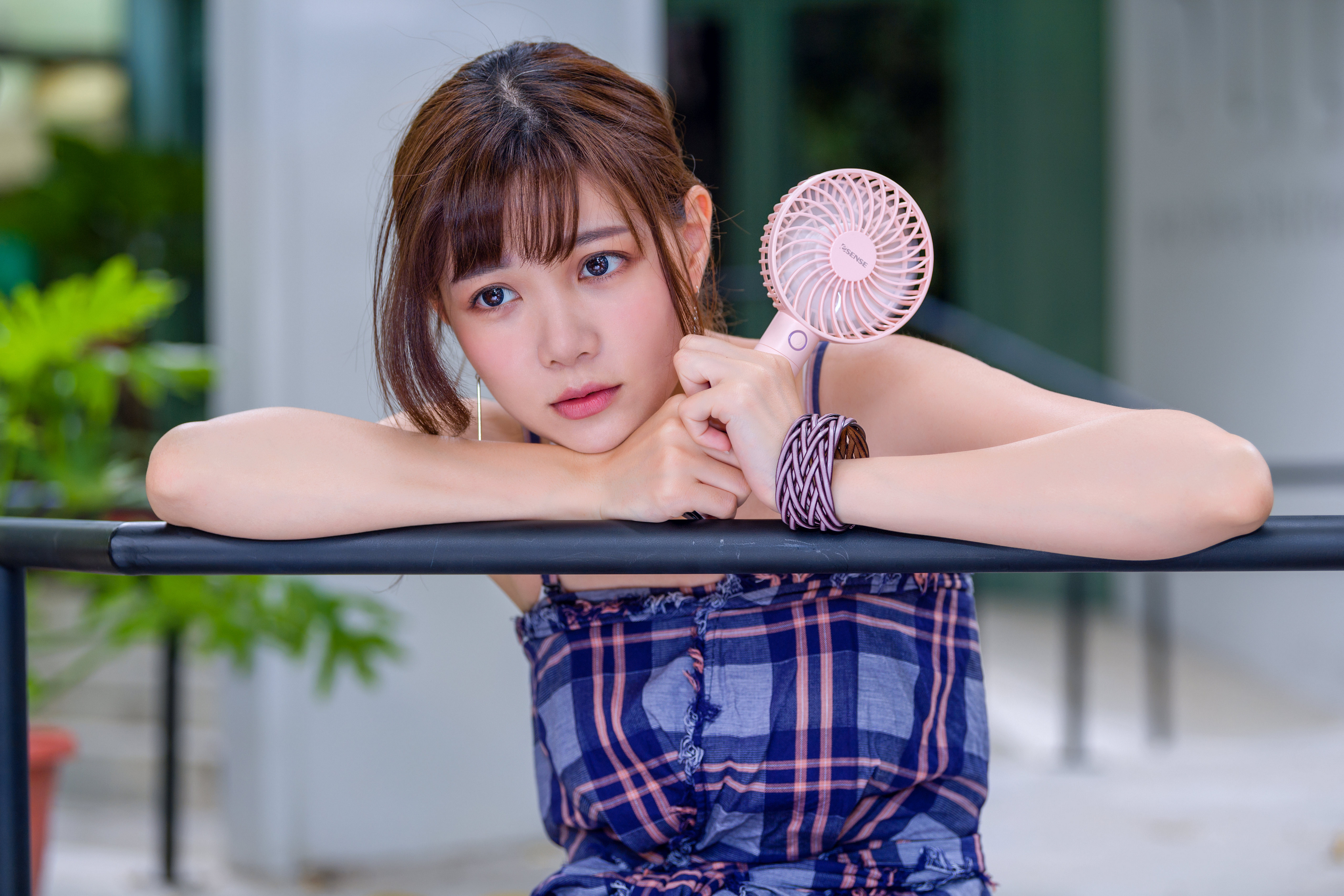 Девушка азиатка с вентилятором в руке - 3840x2560