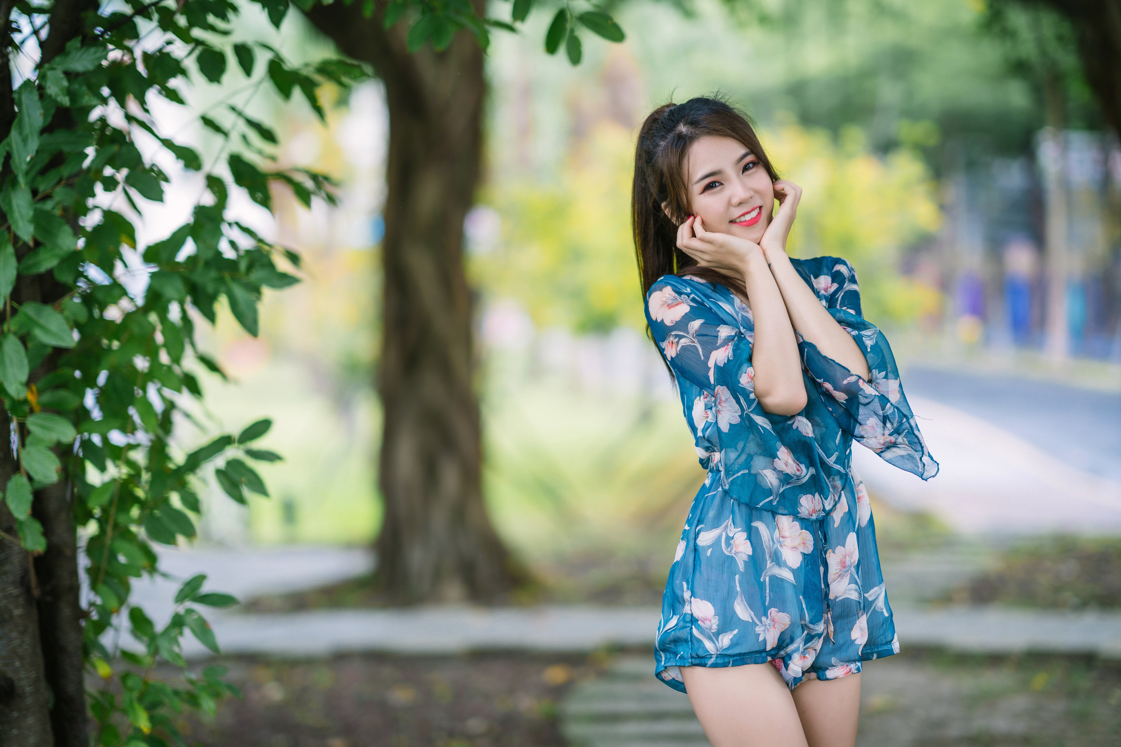 Милая девушка азиатка в комбинезоне - 3840x2561