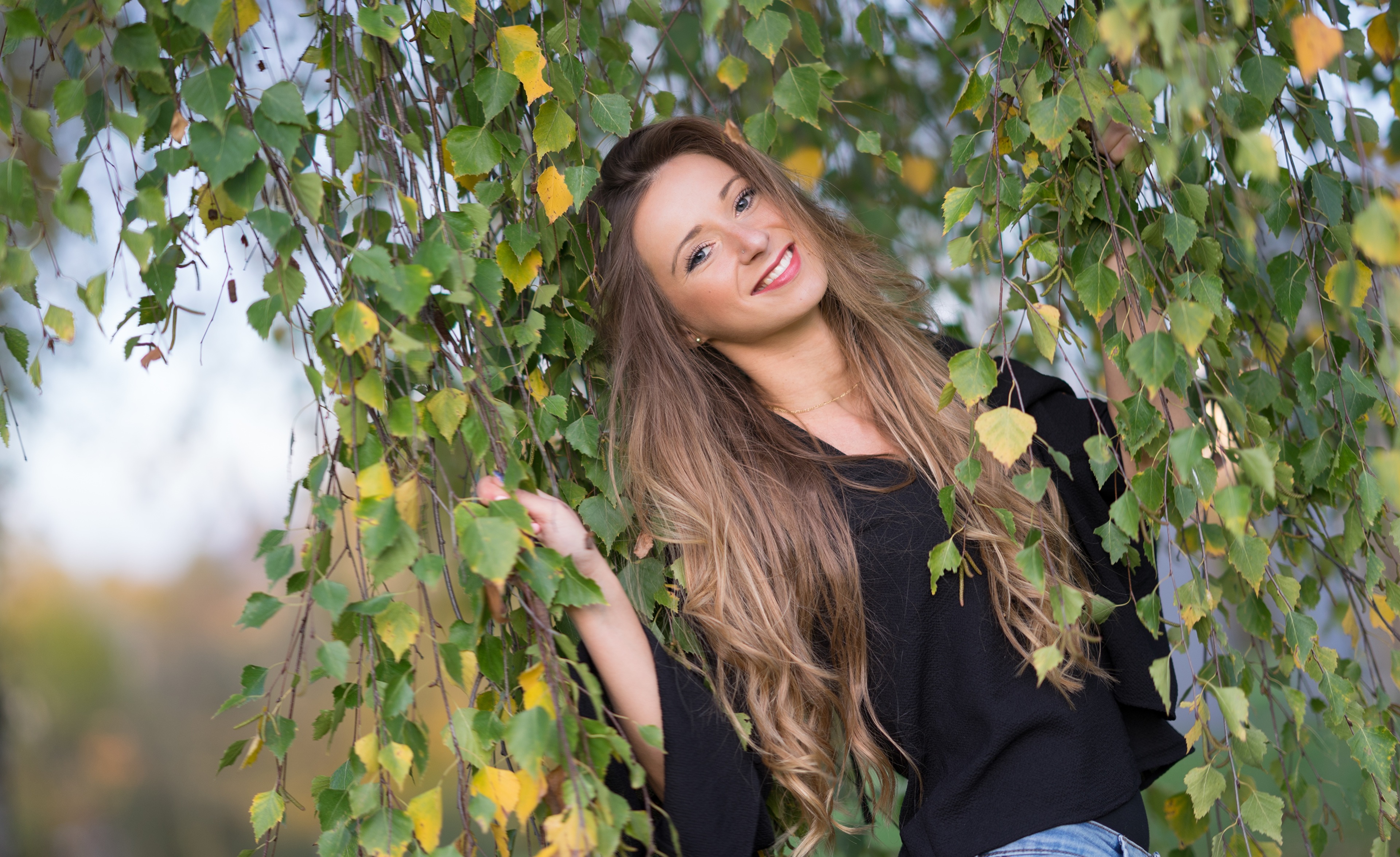 Улыбающаяся девушка в ветках березы - 3840x2350