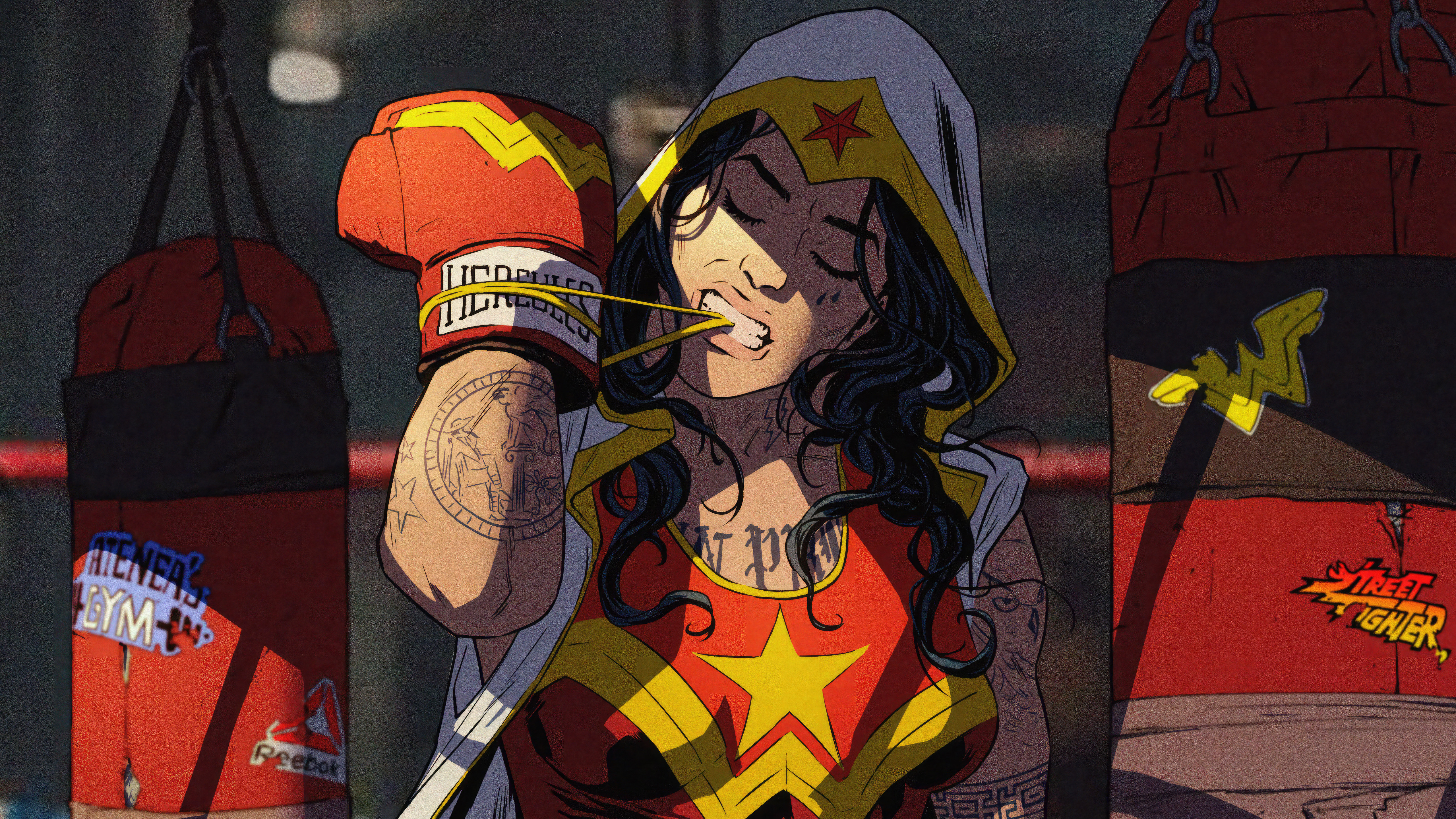 Девушка супергерой в боксерских перчатках - 5120x2880