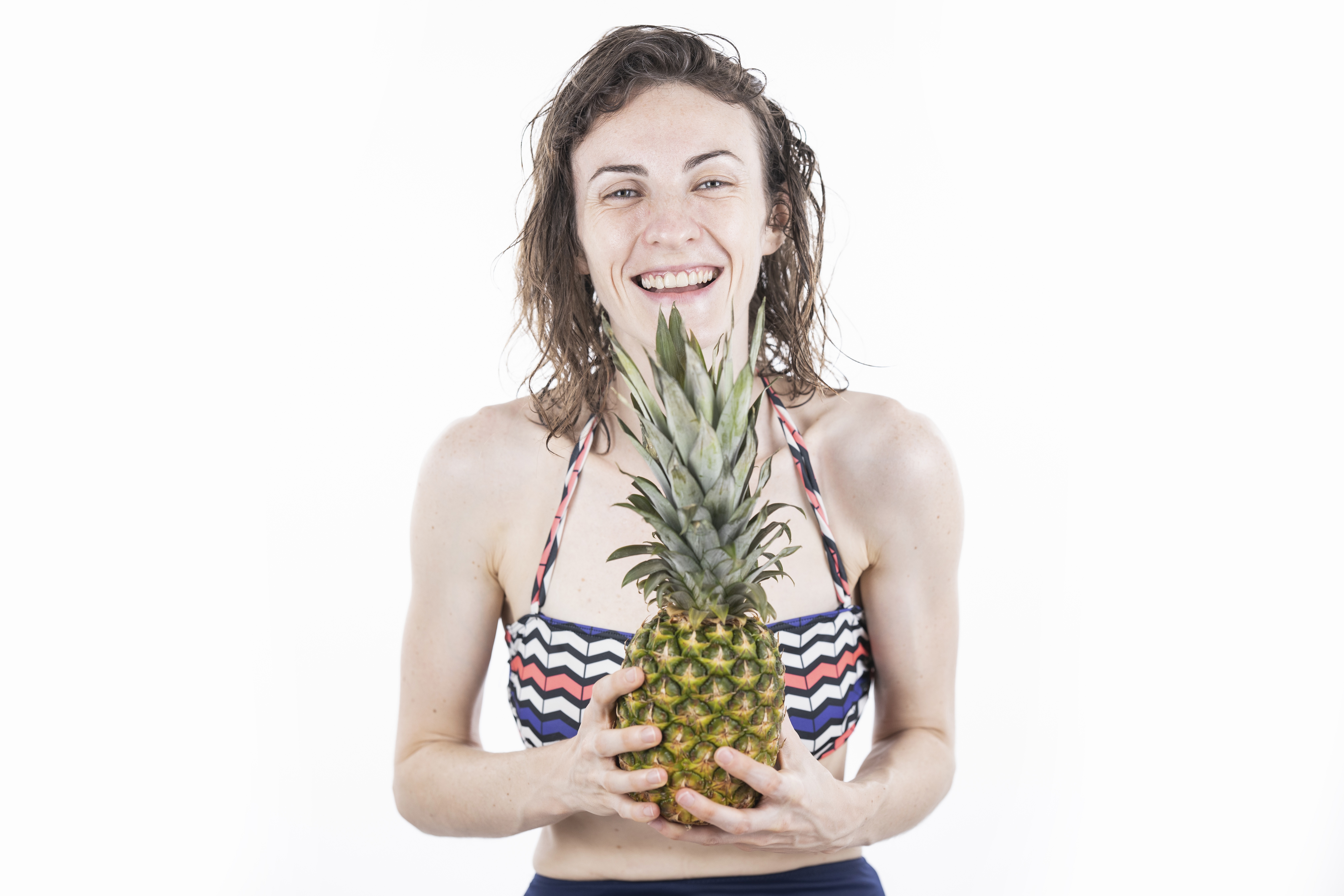 Улыбающаяся девушка с ананасом в руках - 6720x4480