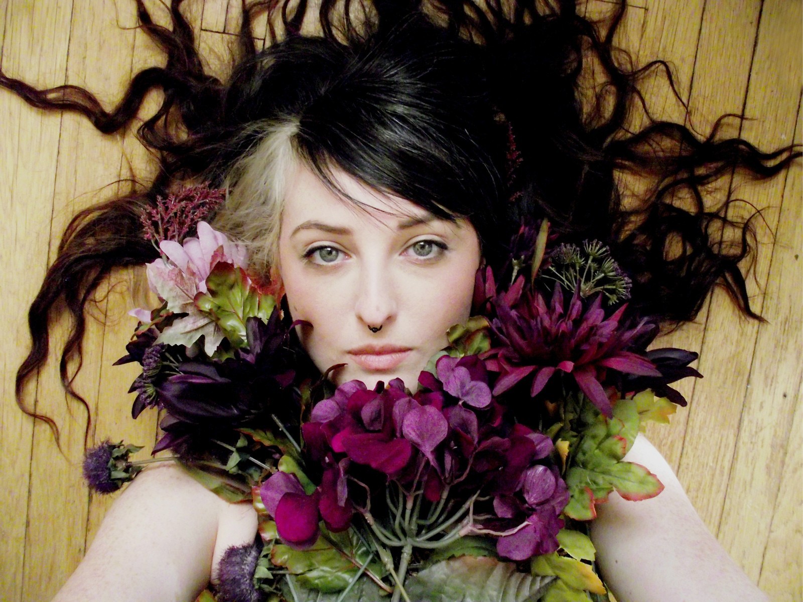девушка с пирсингом с цветами - 1600x1200