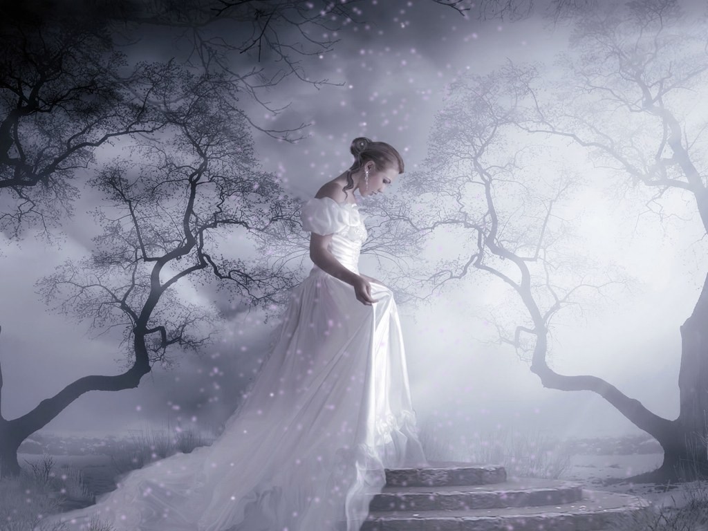 Девушка в длинном белом платье - 1024x768