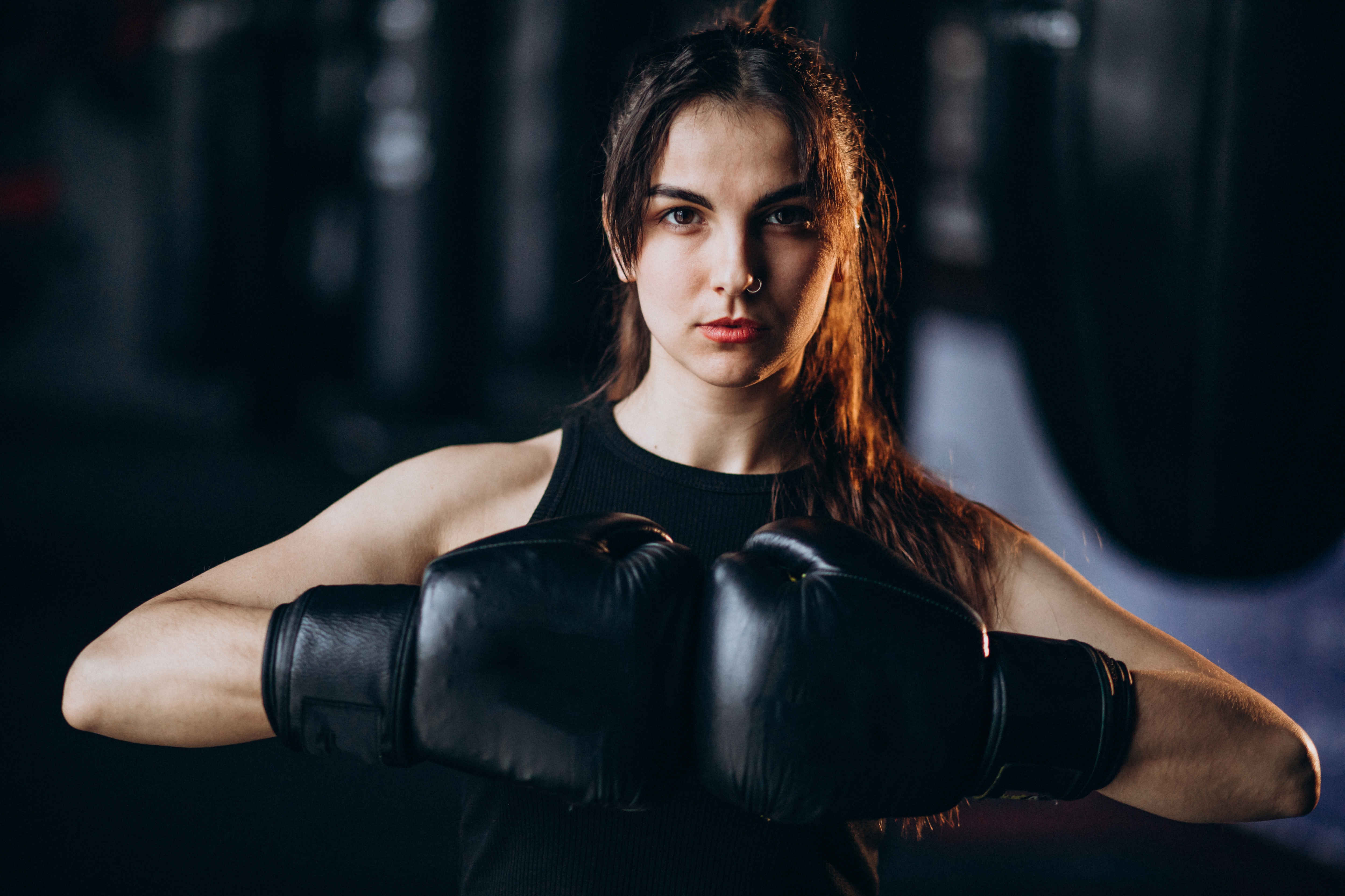 Девушка боксер с черными перчатками на руках - 5000x3333