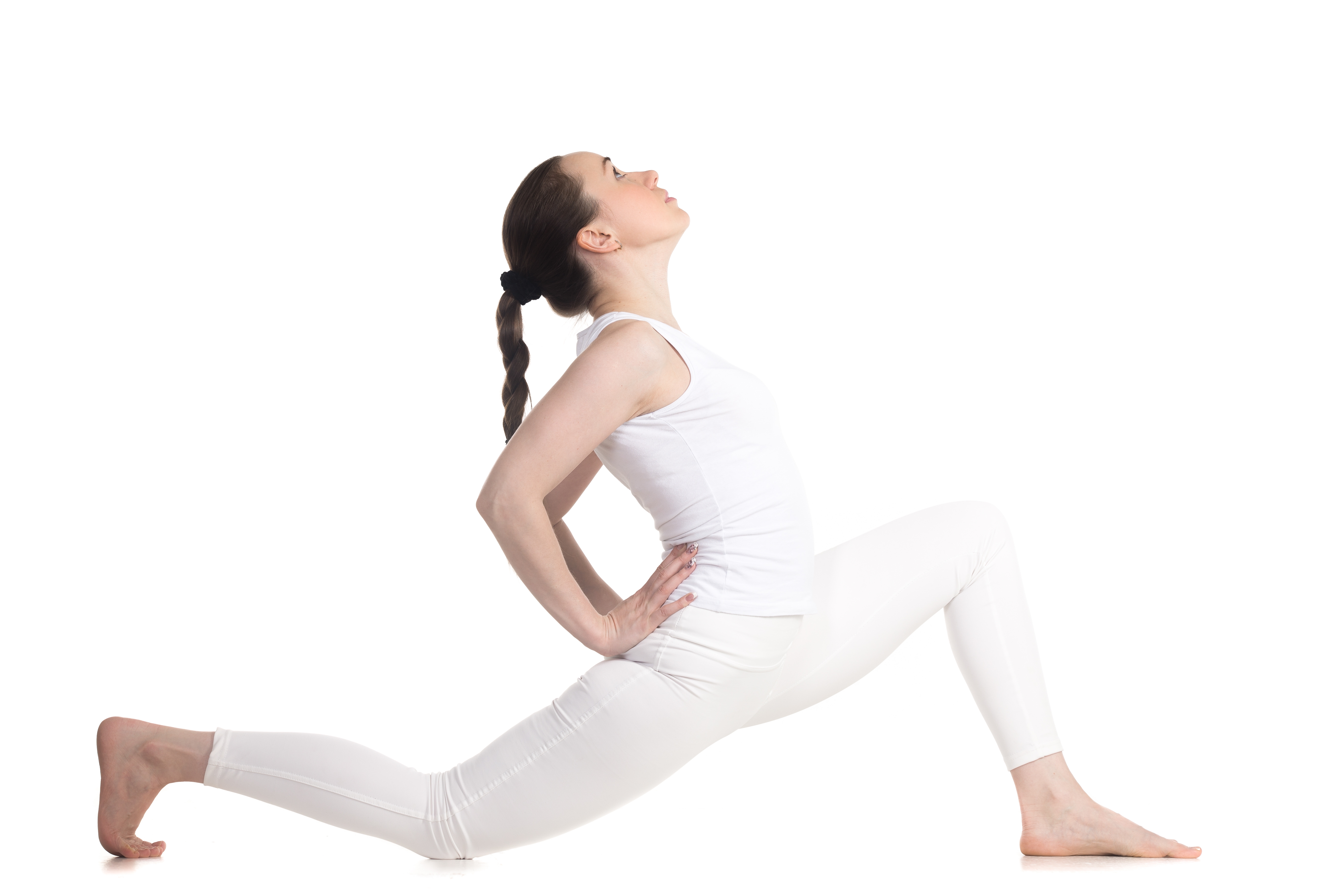 Девушка в белом костюме делает растяжку - 5472x3648