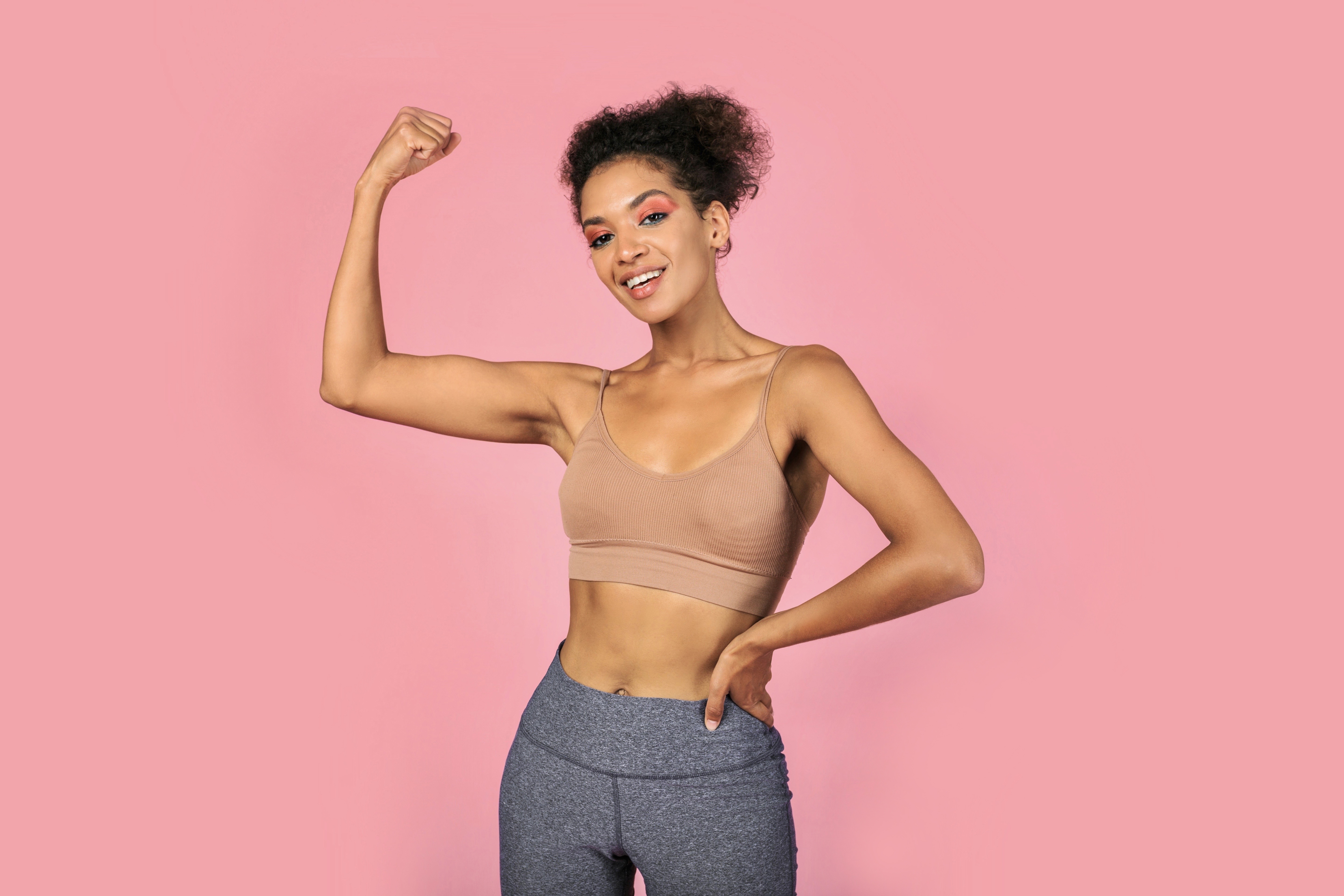 Спортивная девушка на розовом фоне - 5000x3333