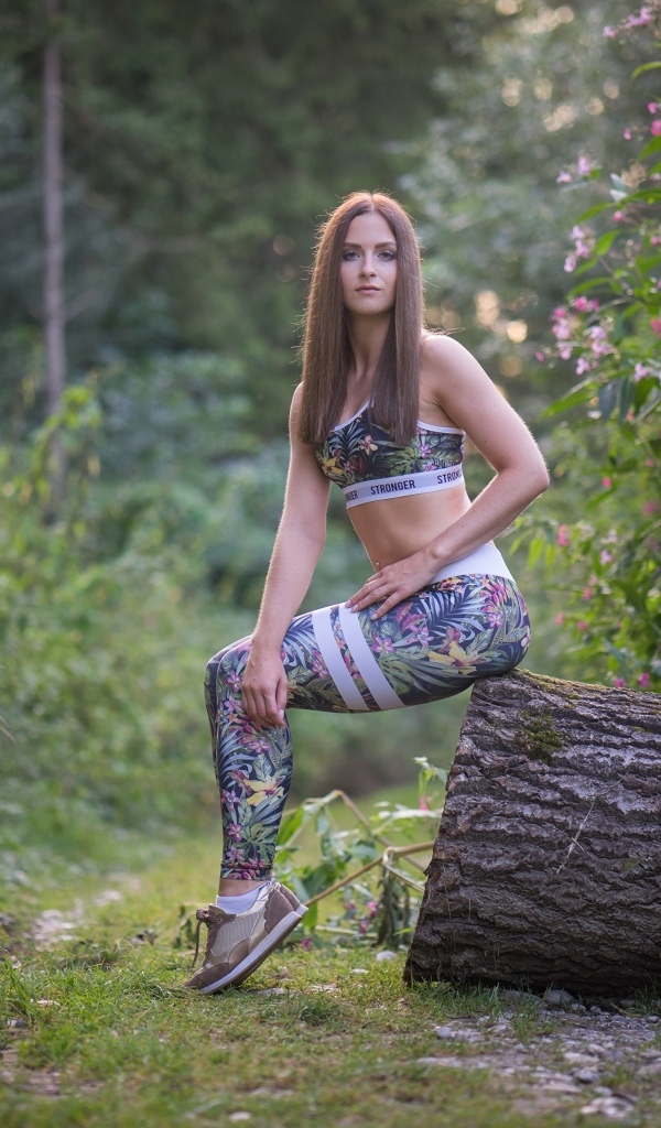 Спортивная девушка сидит на бревне Обои для рабочего стола 600x1024