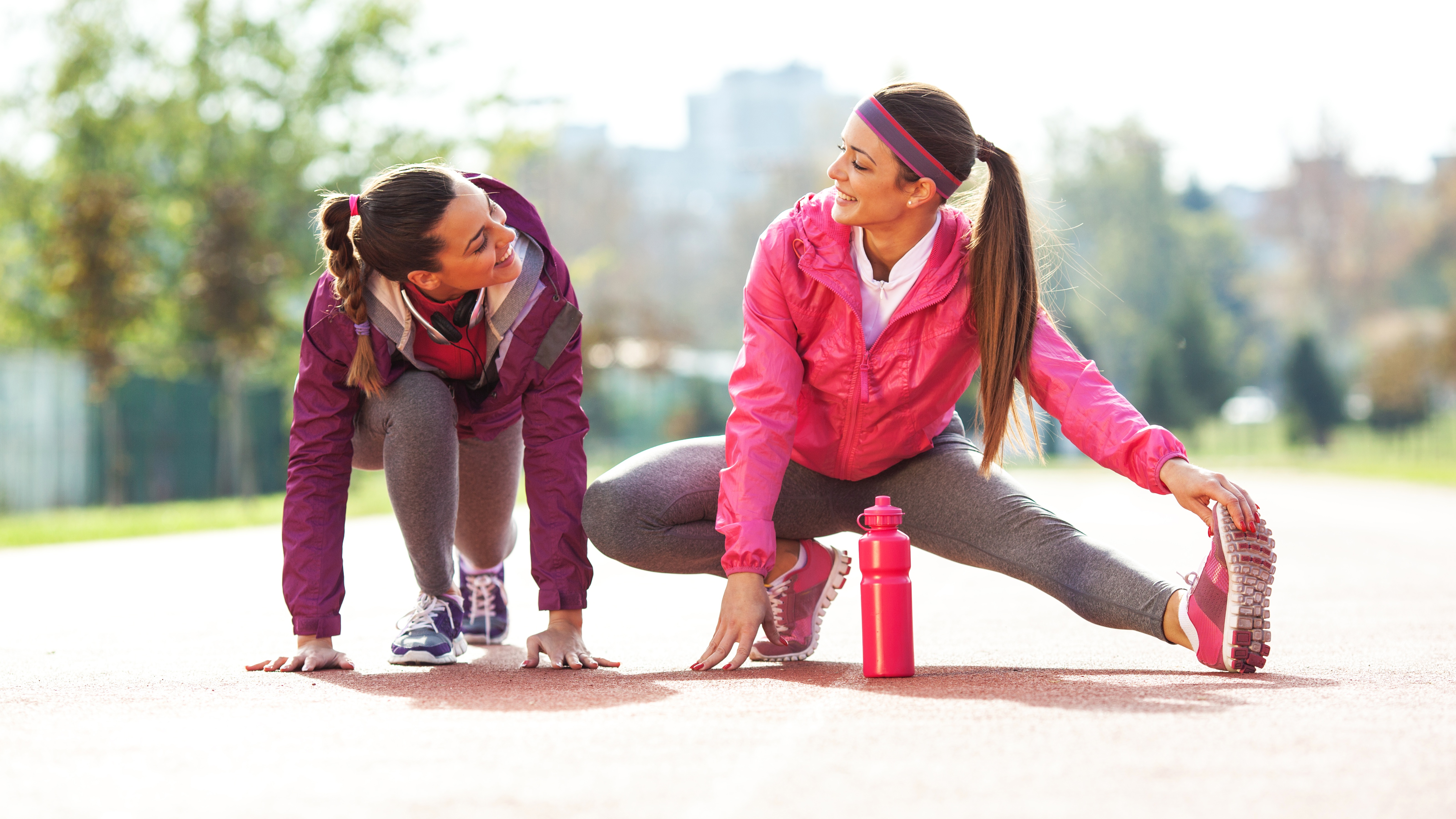 Улыбающаяся девушка в спортивной форме на сером фоне