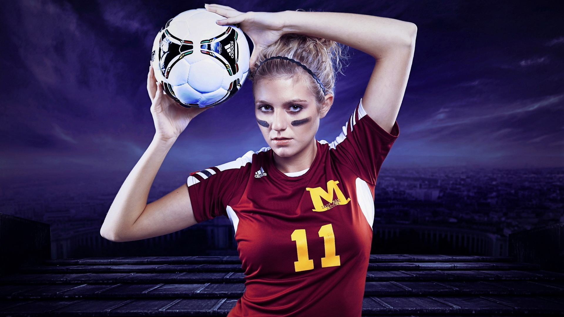 Улыбающаяся девушка в спортивной форме на сером фоне