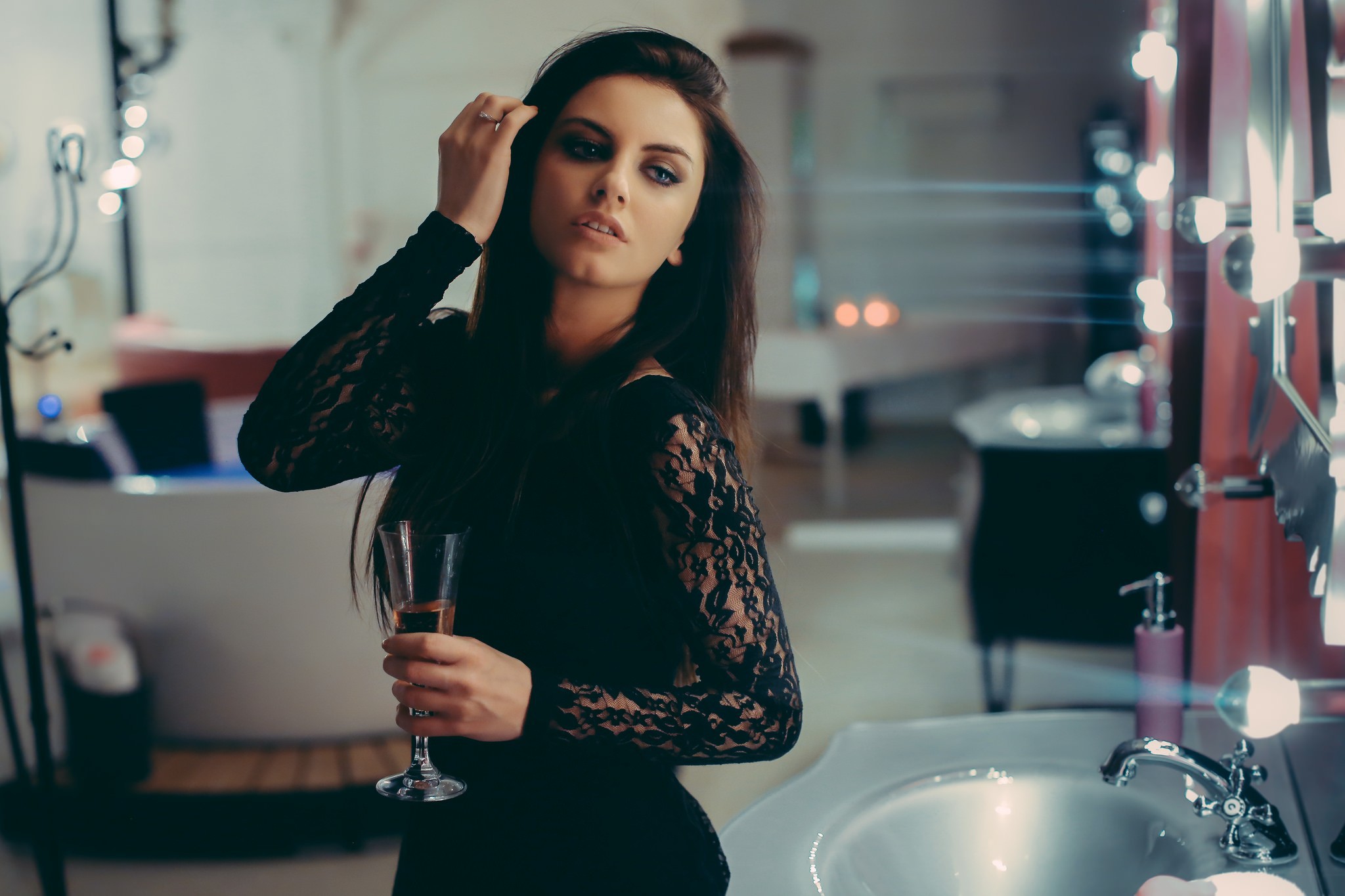 Девушка с бокалом, Aurela Skandaj - 2048x1365