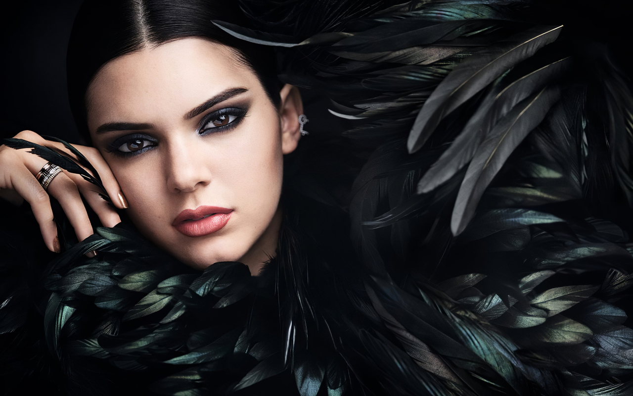 Американская модель Кендалл Дженнер в черных перьях - 3840x2400