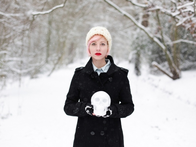 Обои: Девушка с черепом из снега