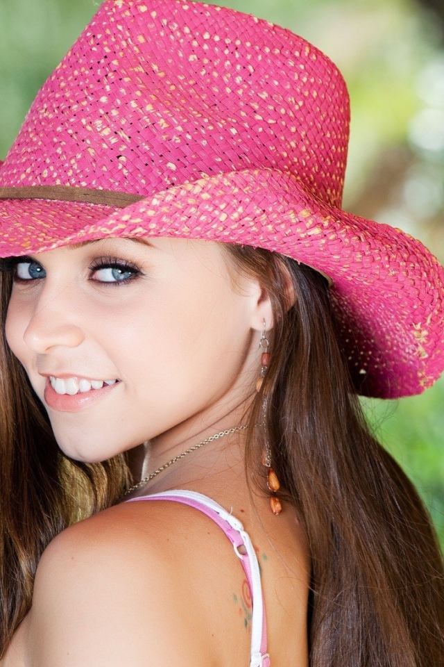Девушка в розовой шляпе Обои для рабочего стола 640x960