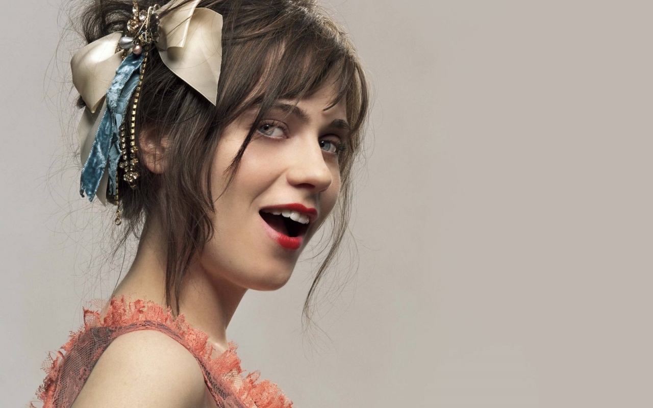 Зоя Дешанель с бантиком Обои для рабочего стола 1280x800