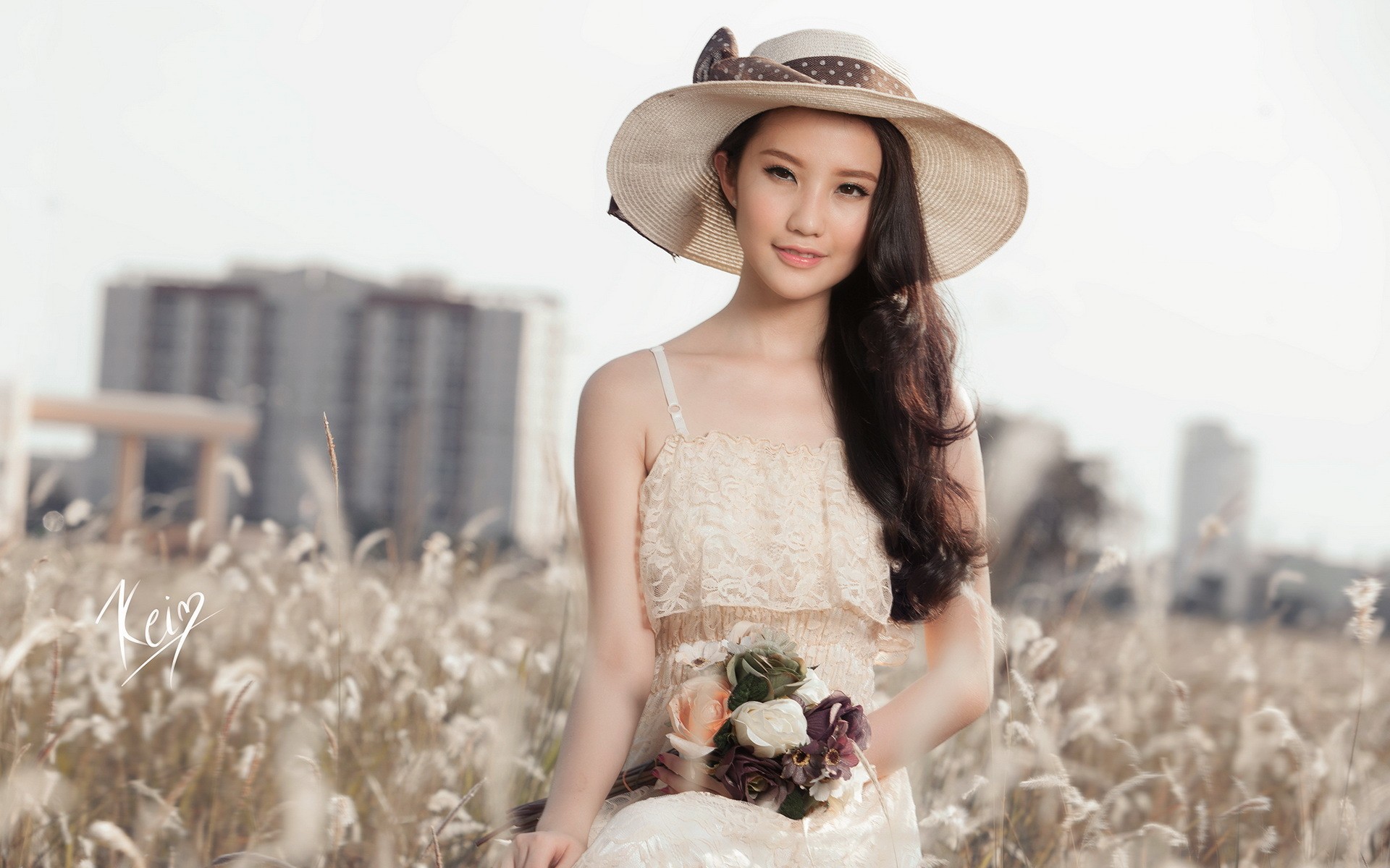Азиатка в шляпе - 1920x1200