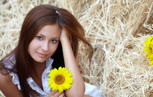 Девушка с желтым цветком Обои для рабочего стола 600x382