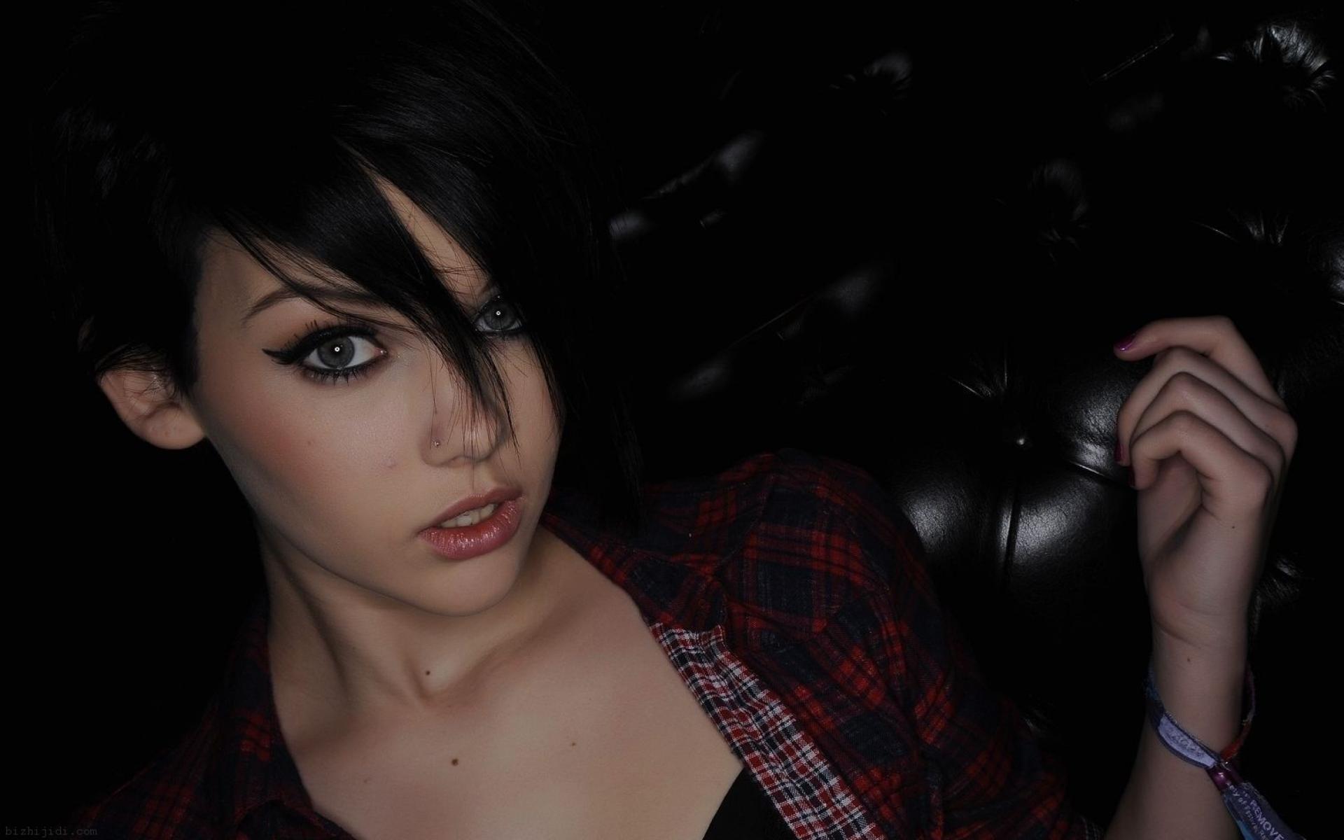 Обои: Молодая девушка брюнетка с пирсингом в носу