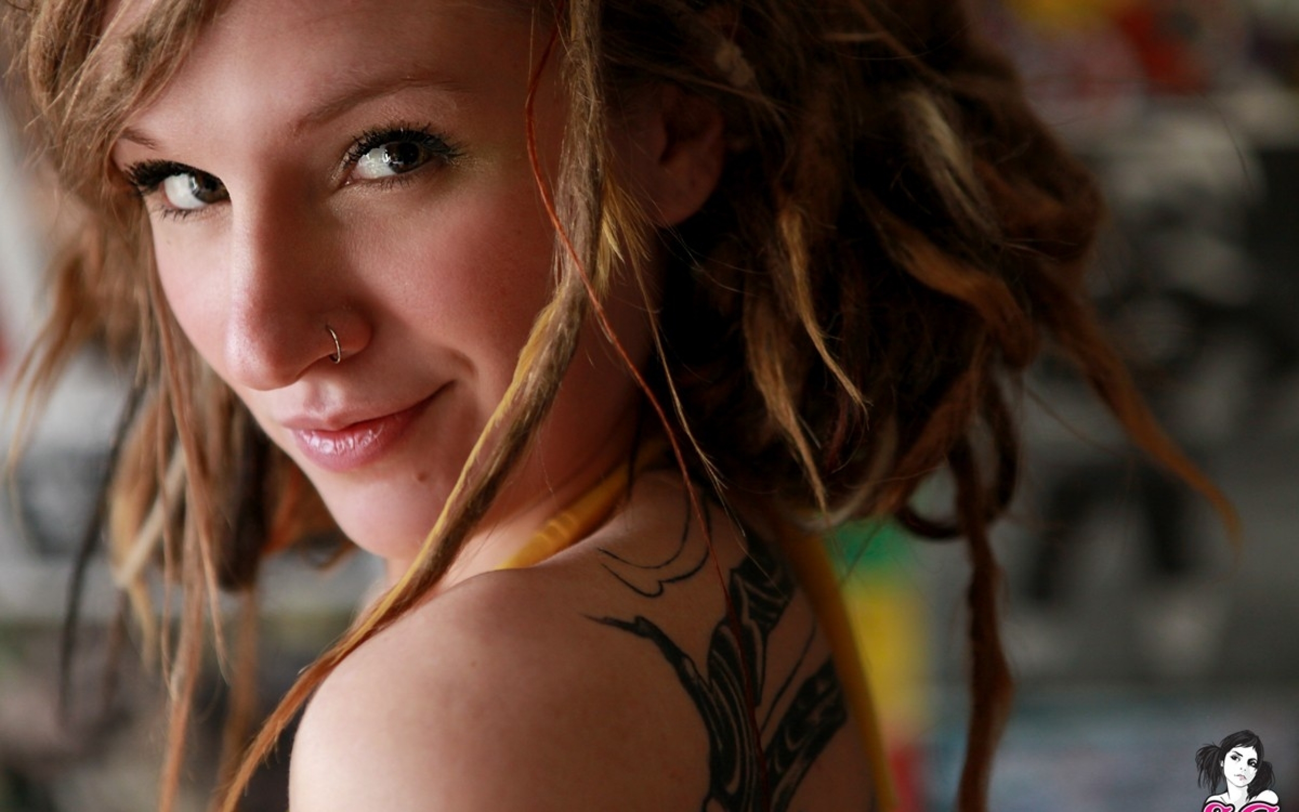 Обои: Улыбающаяся девушка с пирсингом в носу