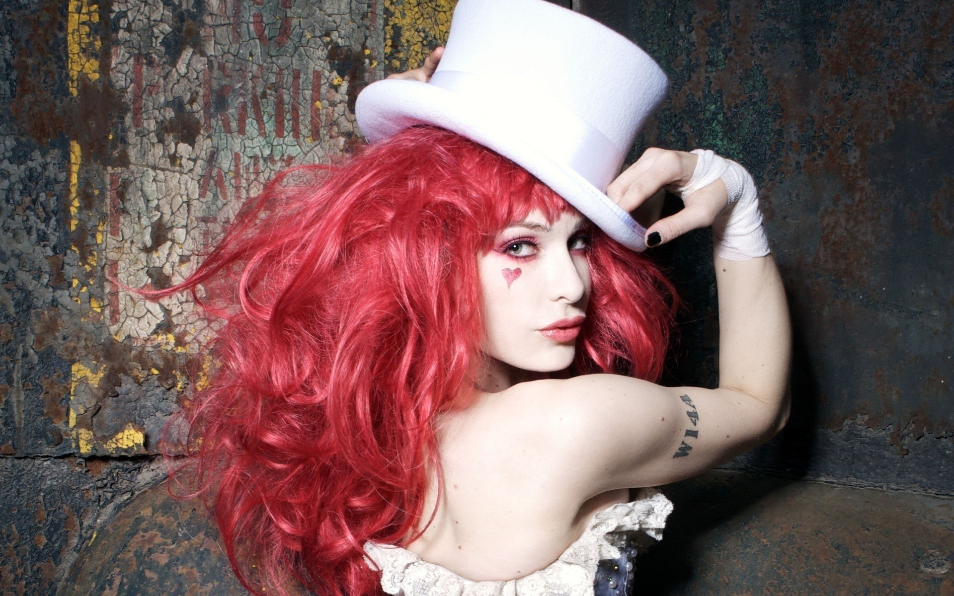 Девушка с красными волосами в белом цилиндре - 1920x1200