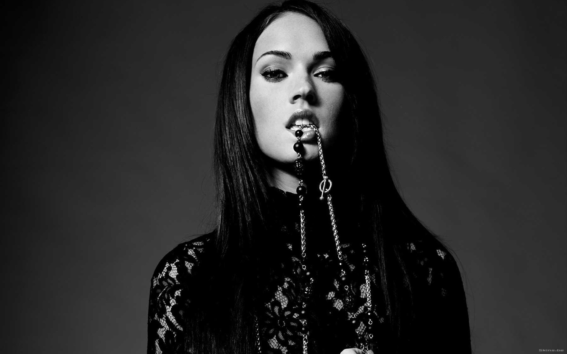 Обои: Девушка держит в зубах украшение