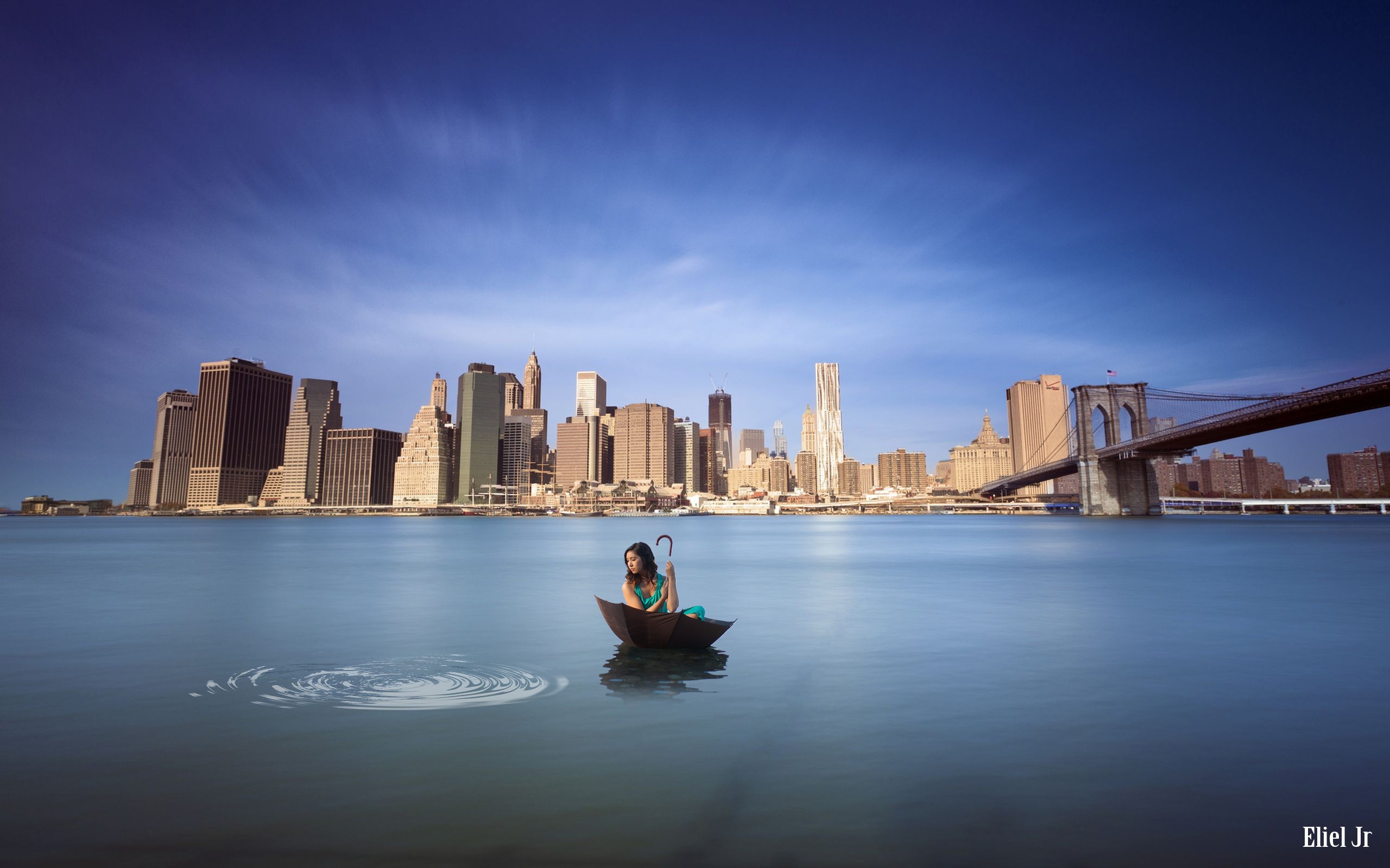 Обои: Девушка плывет на зонте