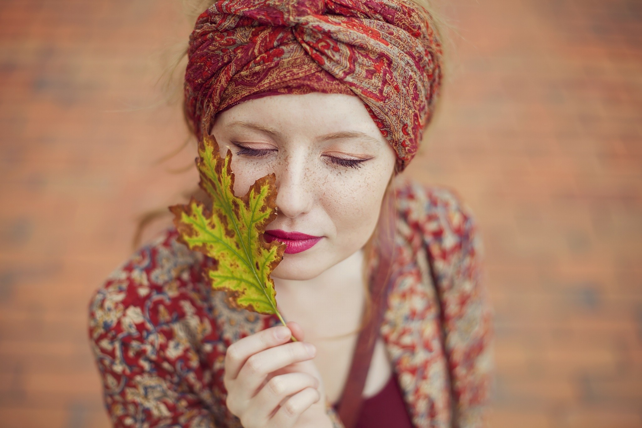 Девушка в традиционном наряде держит в руке лист - 2048x1365