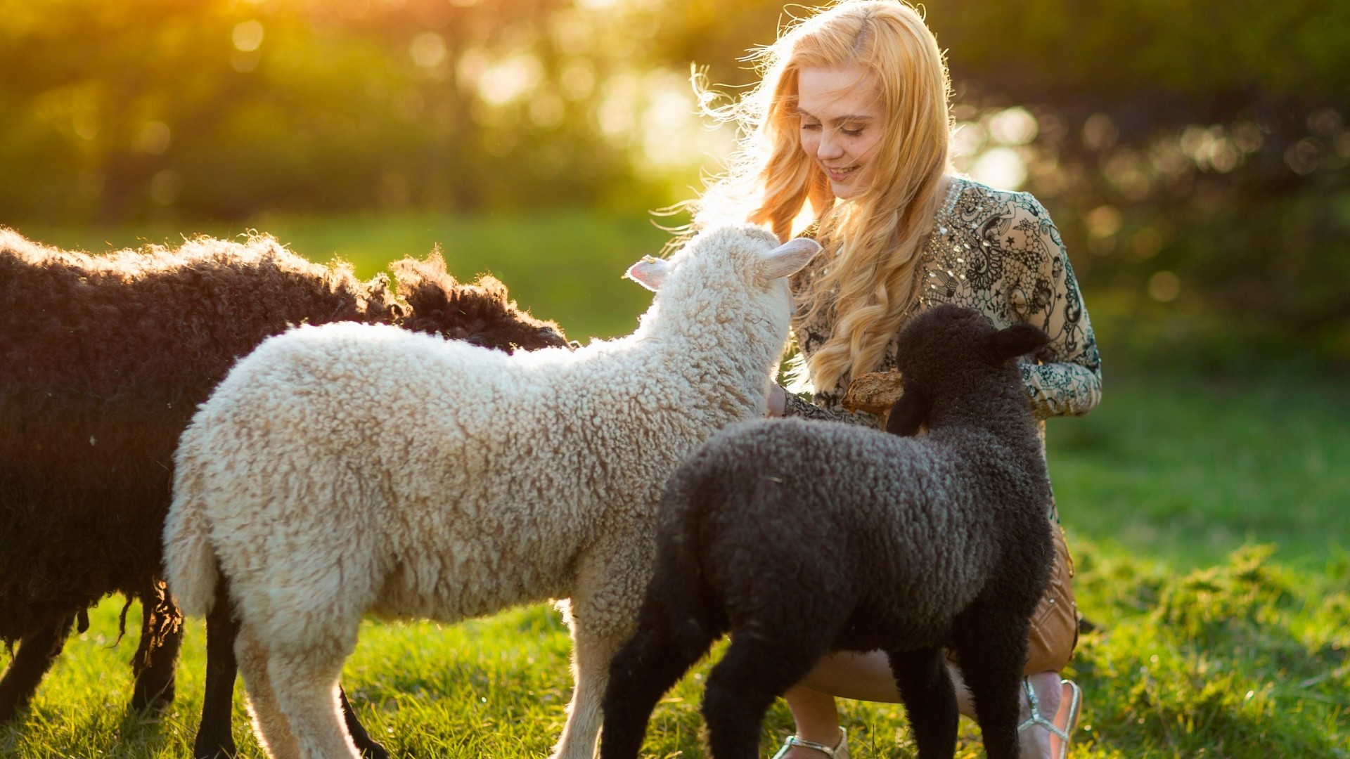 Девушка с ягнятами - 1920x1080