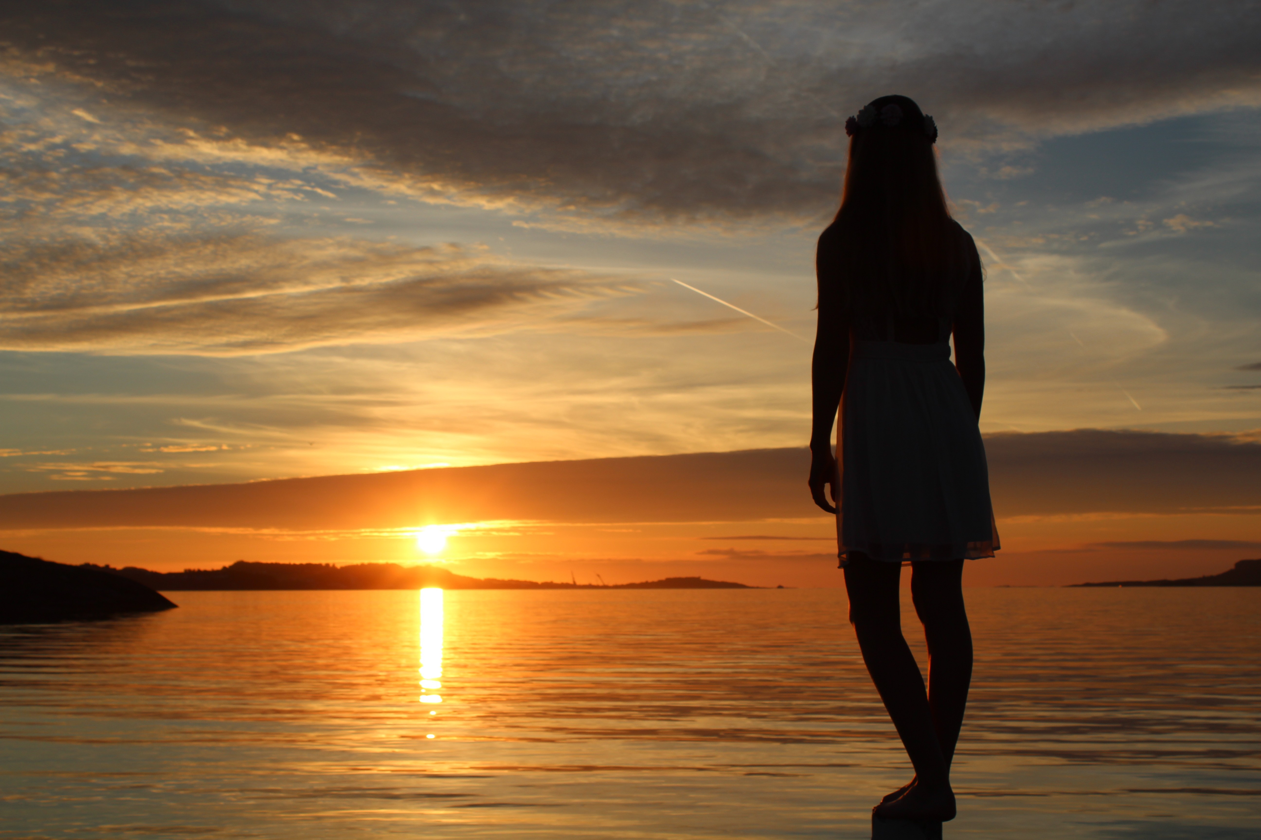Девушка смотрит на закат в Норвегии - 5184x3456