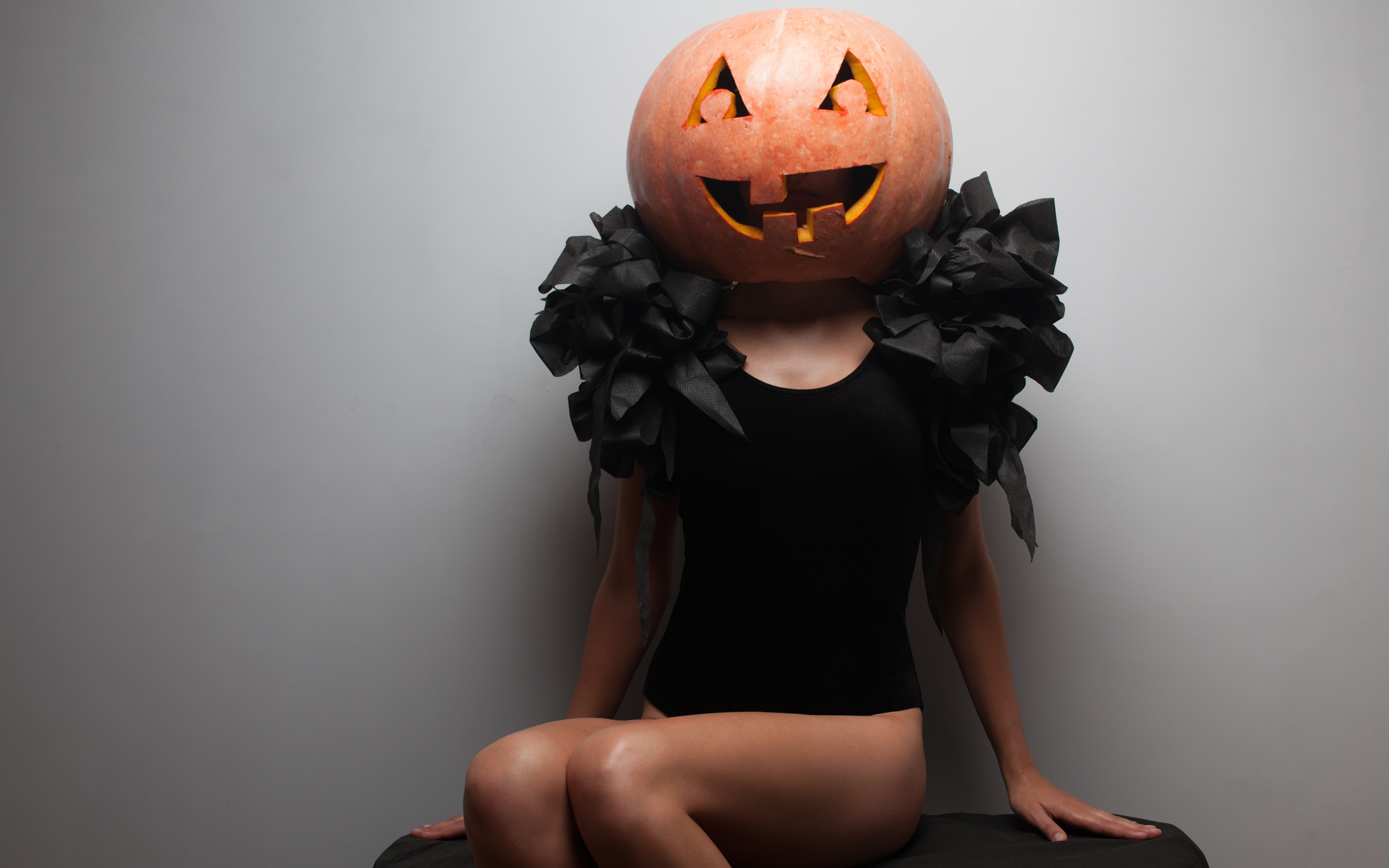 Девушка с тыквой на голове на Хэллоуин - 5616x3744