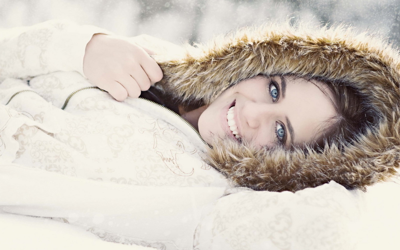 Девушка на снегу - 1680x1050