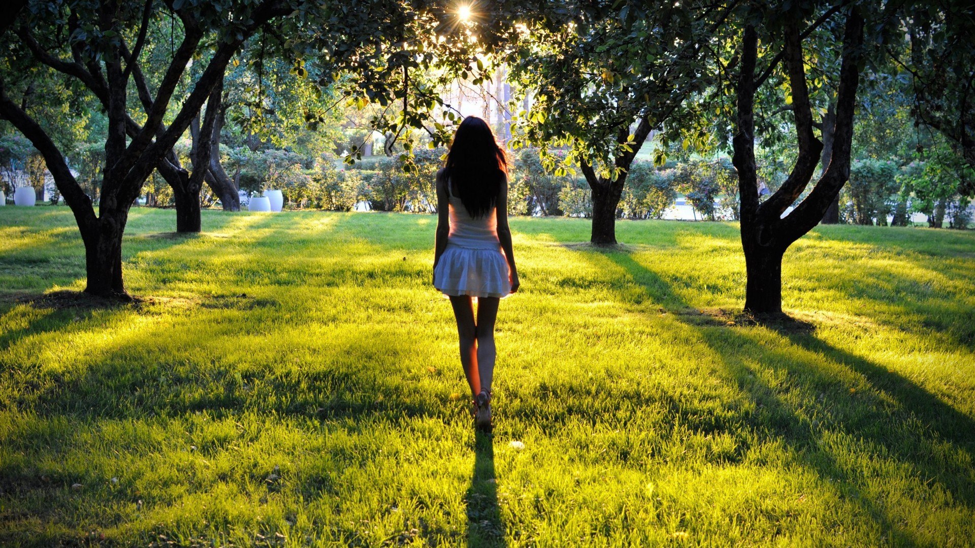 Девушка среди деревьев в парке - 1920x1080